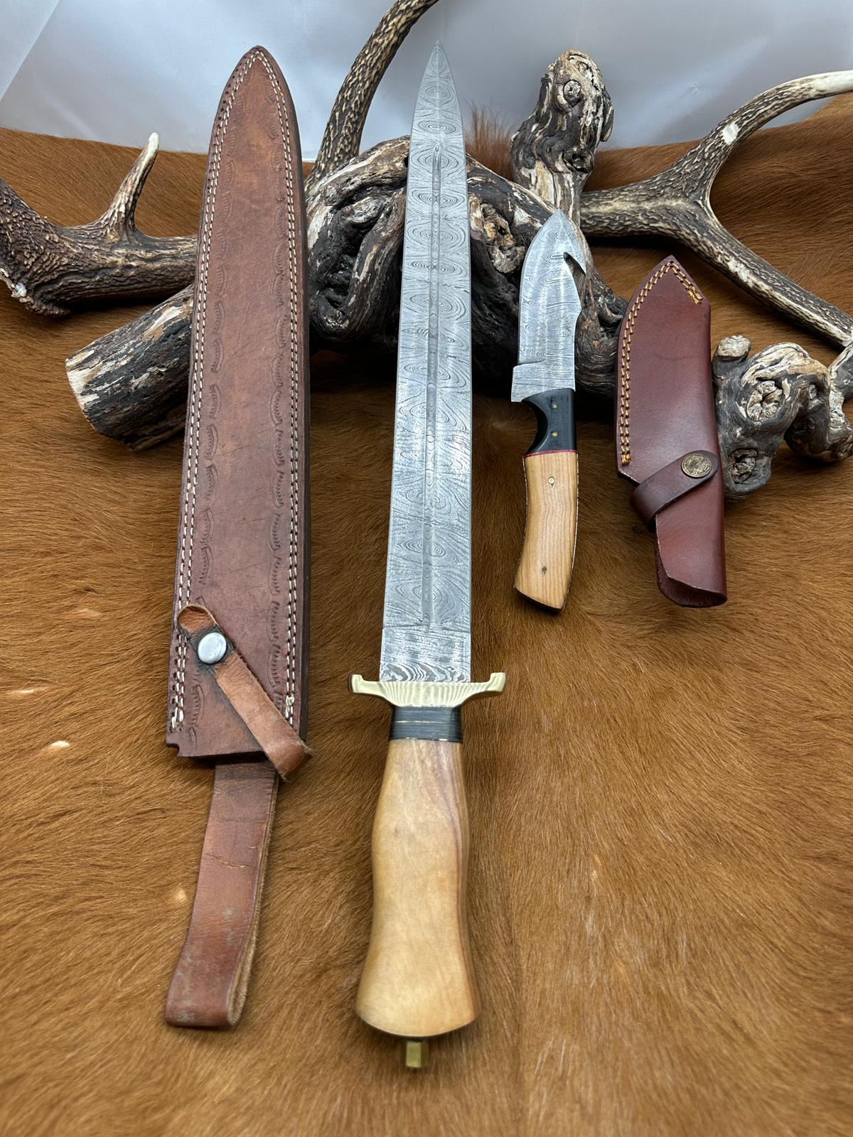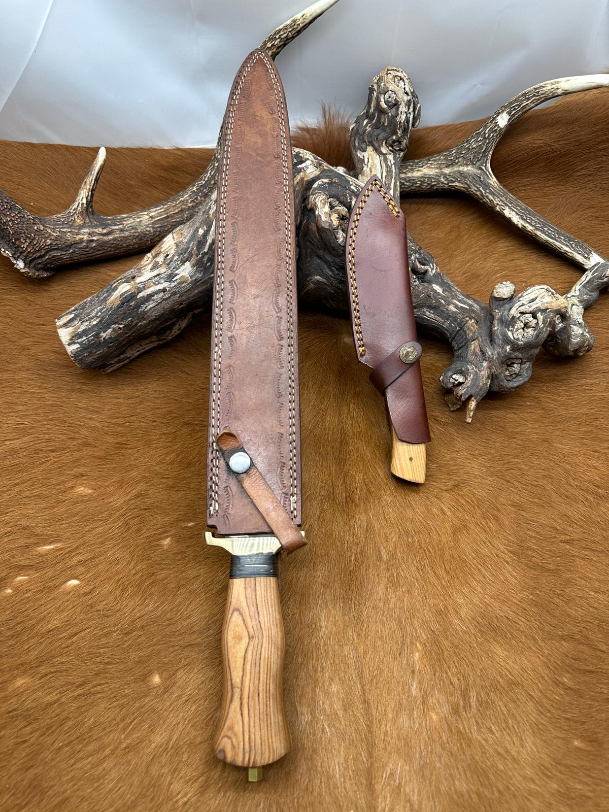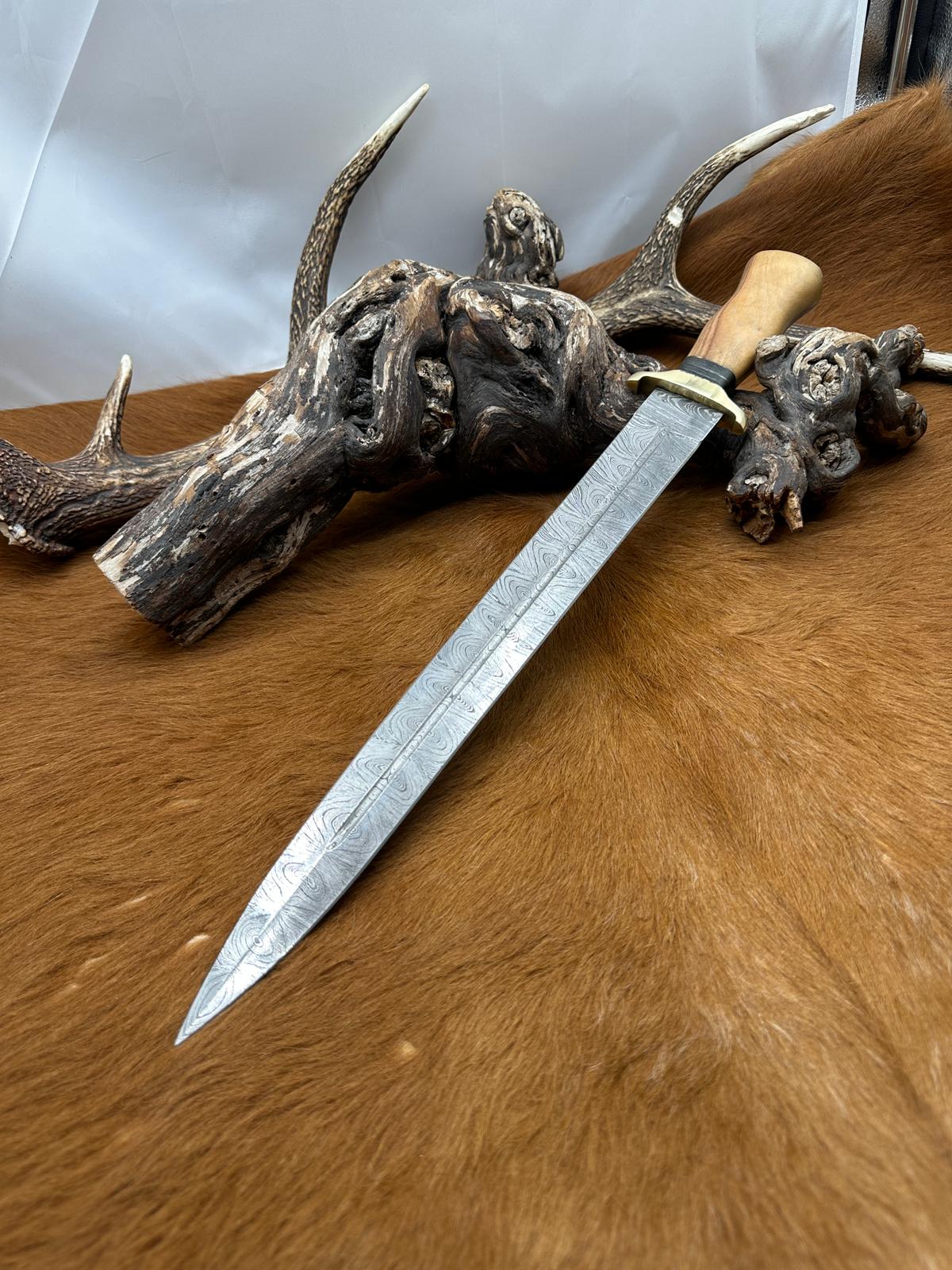 Belle dague lame damas 256 Couches manche Bois d'Olivier fabrication. artisanale