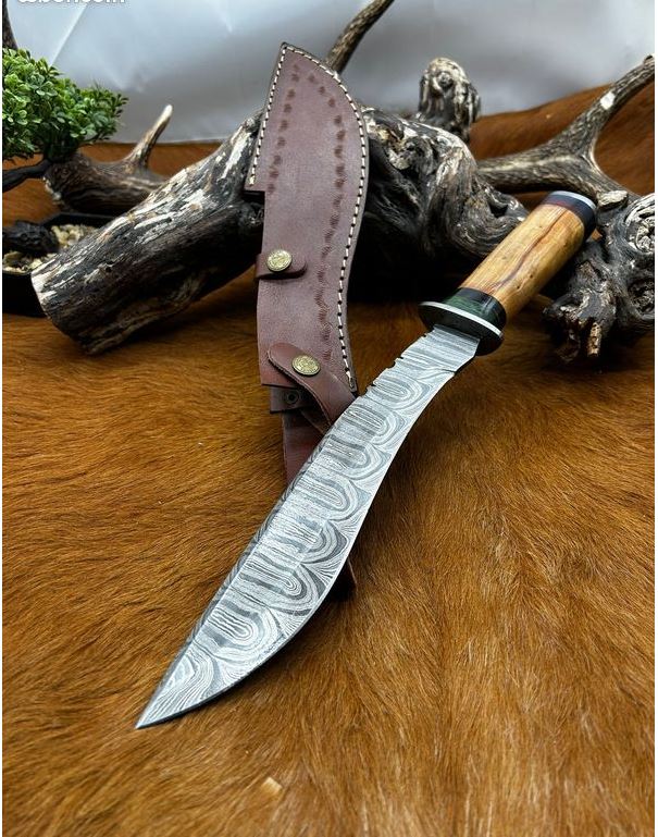 Magnifique Bowie lame en acier damas 256 couches manche en bois Taille totales 37 taille de la lame 24 etui en cuir