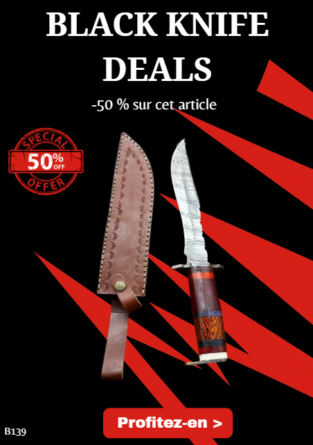 Magnifique Bowie lame en acier damas 256 couches manche en bois, garde et pommeau en acier damas Taille totales 35 taille de la lame 22 etui en cuire