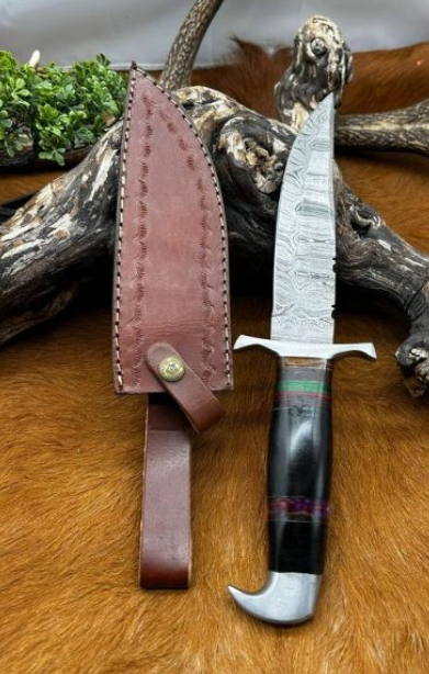 Magnifique Bowie lame en acier damas 256 couches manche en corne Taille totales 34cm taille de la lame 18cm