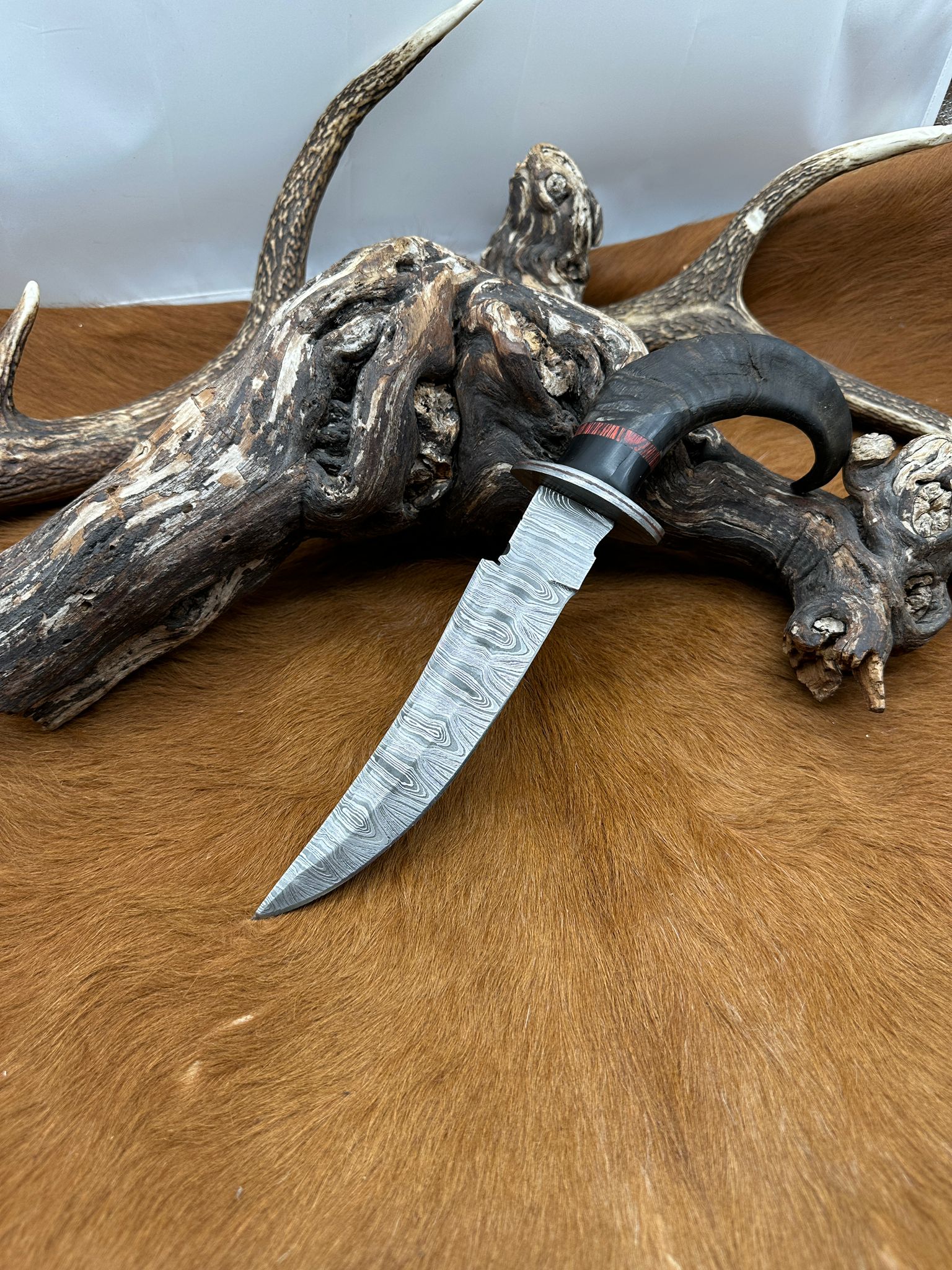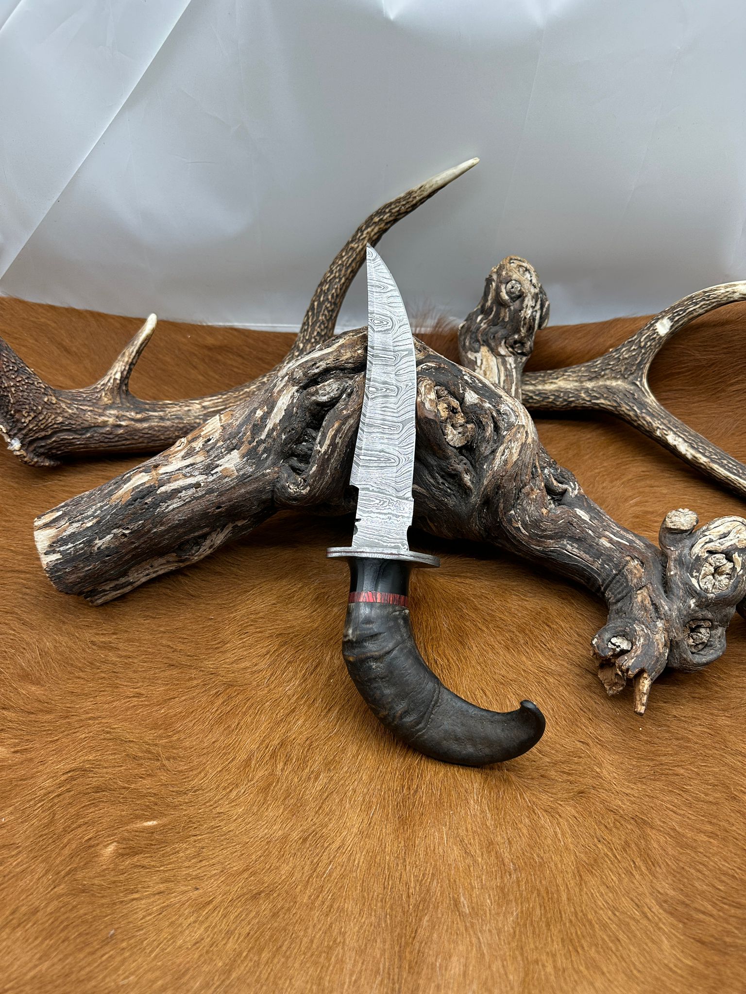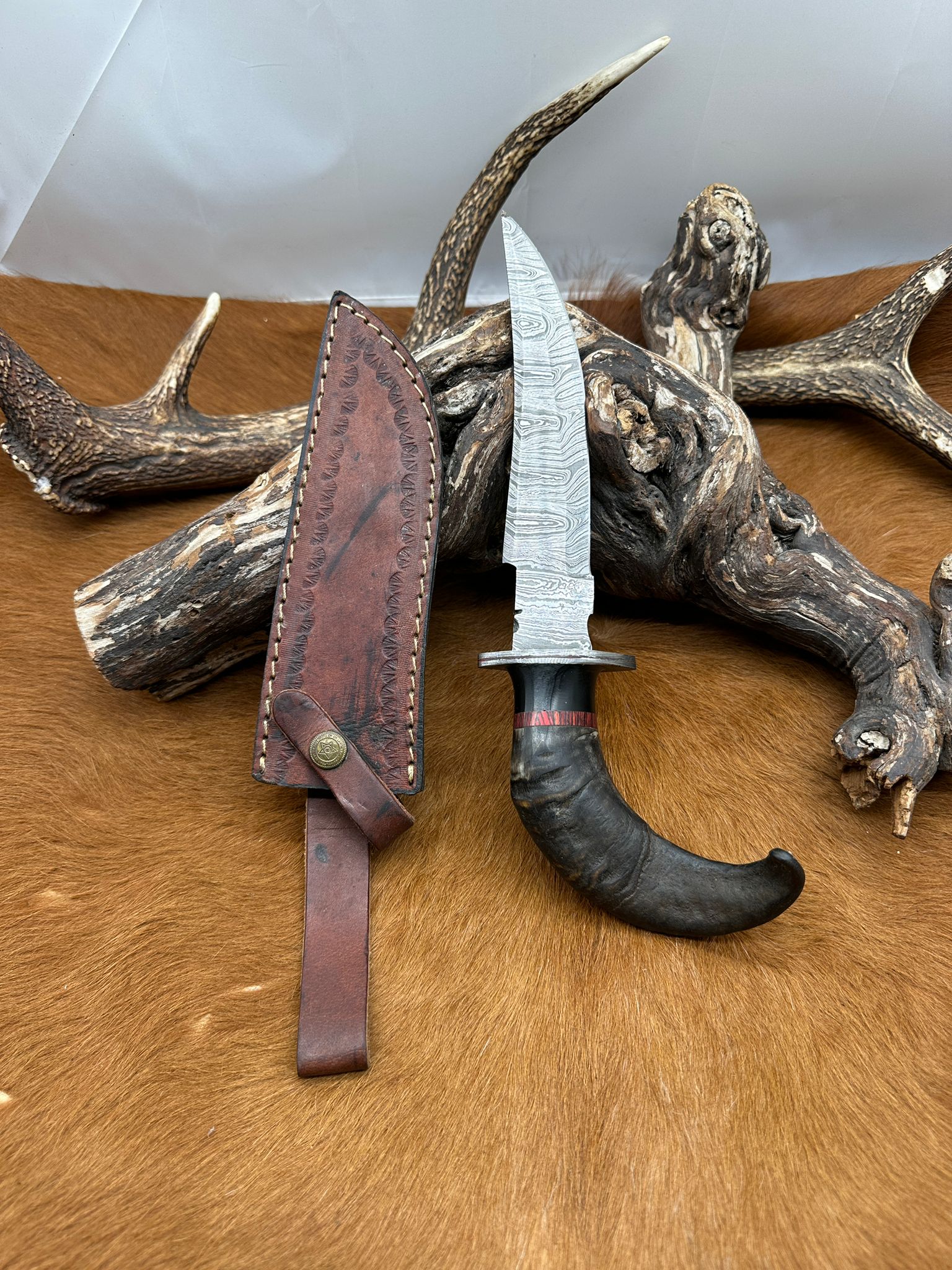 Magnifique Bowie lame en acier damas 256 couches Manche en corne Taille de la lame : 19 Taille manche : 12