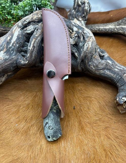 Robuste et tranchante, sa lame en acier inoxydable permet de désosser et dépecer la viande, taille totales 22 cm taille de la lame 10 cm vendu avec son etui en cuir
