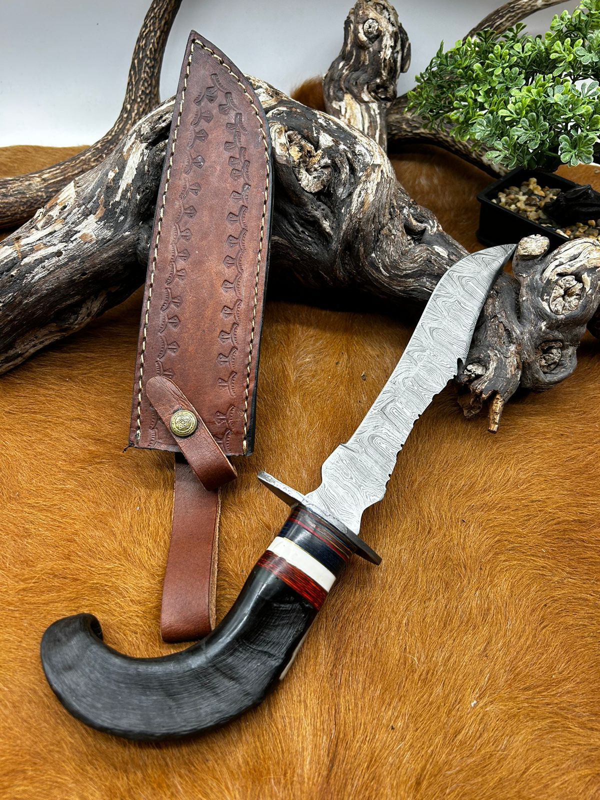 Longueur Bowie totales 45 cm taille de la lame 22 cm manche en corne de bélier
