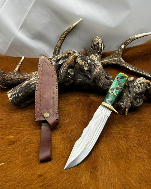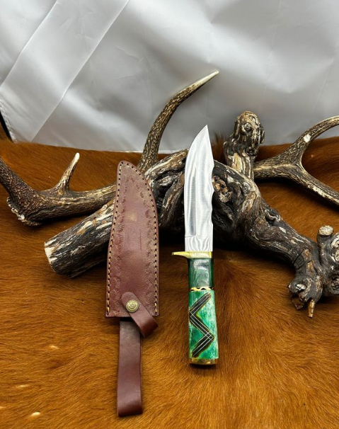Couteau Bowie lame acier damas 256couches : pièce unique manche en os véritable artisanal ref O43