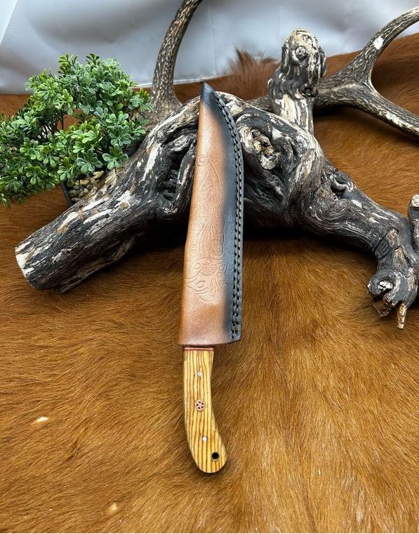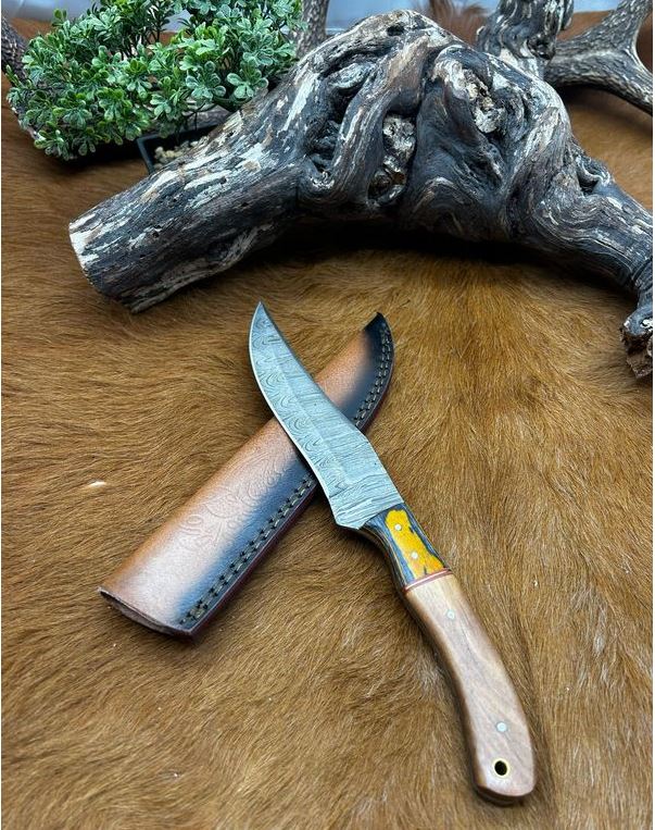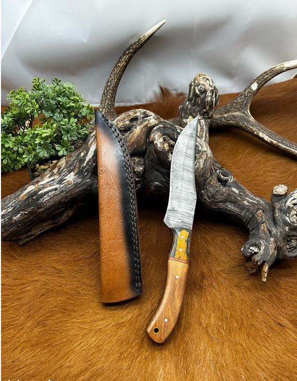 Couteau chasse lame damas 256 couches Manche en bois d’olivier ref D53