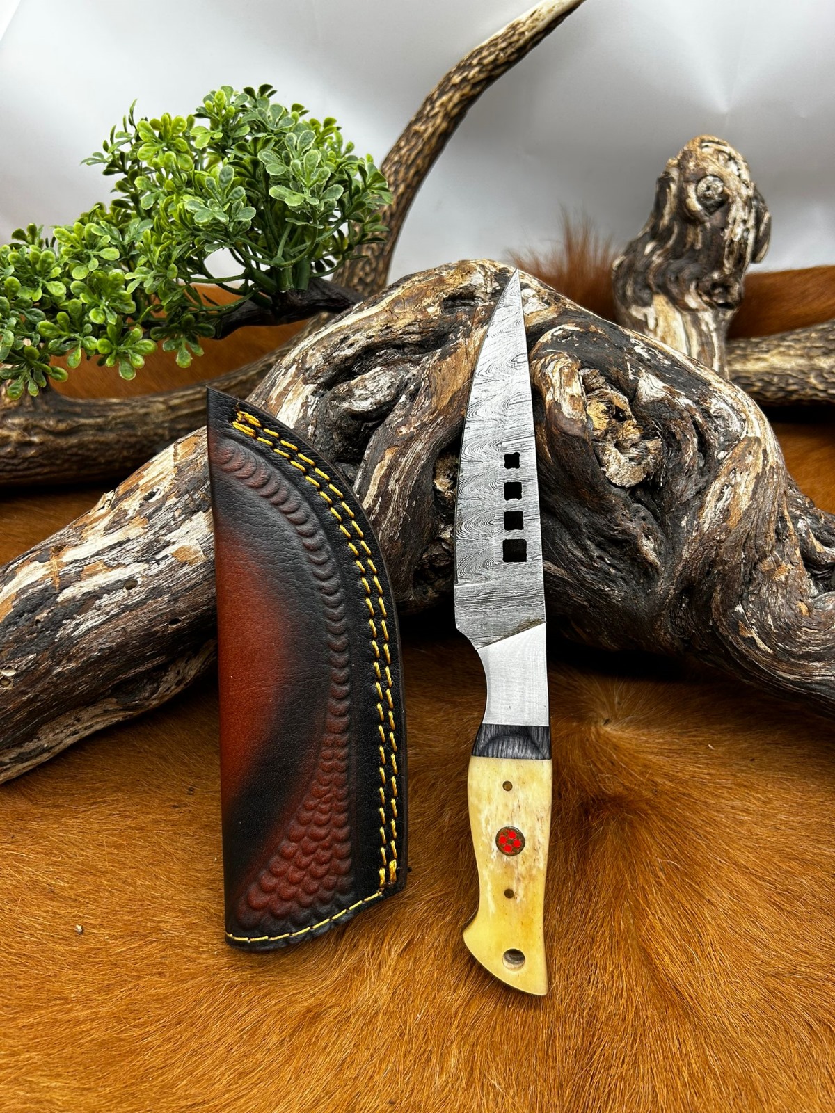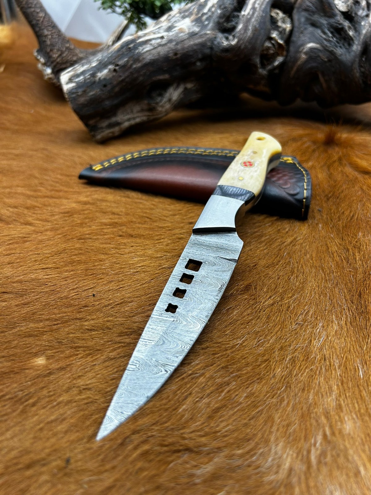 Magnifique couteau lame en acier damas 256 couches avec des formes découper au laser