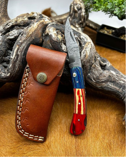 Couteau lame en acier Damas 256couches avec manche en bois pliant