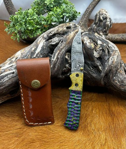 Magnifique petit Couteau smoky Mountain Blades lame en acier Damas et manche en bois vendu dans sa boîte ref SMB133