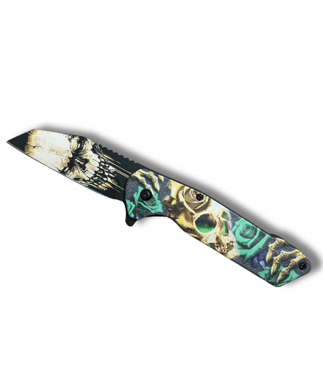 quantité de COUTEAU ROSES VERTE TETE DE MORT OUVERTURE ASSISTEE