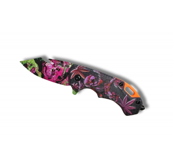 COUTEAU TETE DE MORT ROSE OUVERTURE ASSISTEE