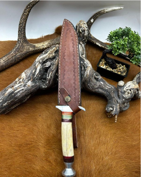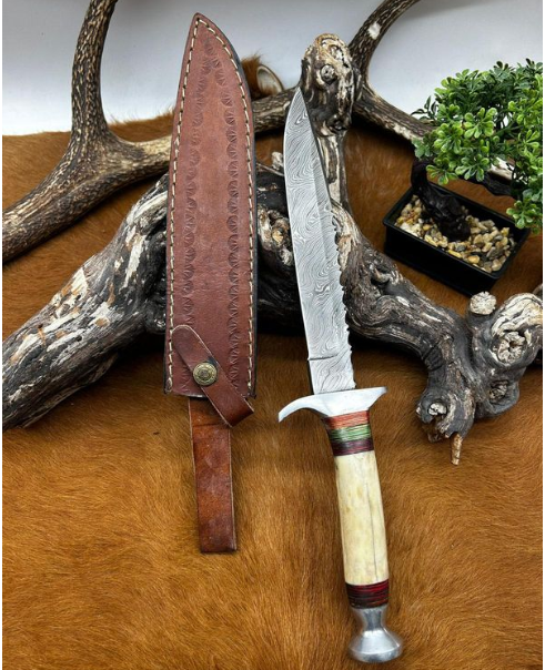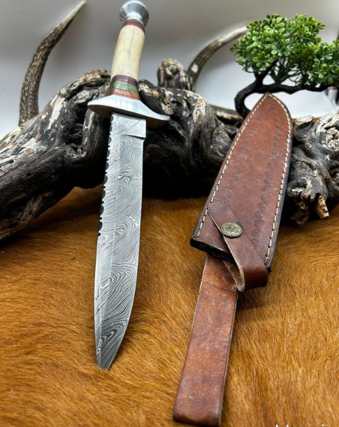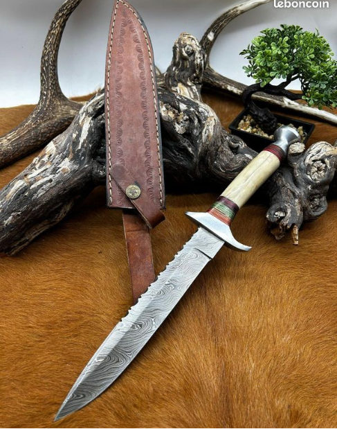 très jolie Bowie lame en acier damas 256 couches très aiguisée de 22 cm