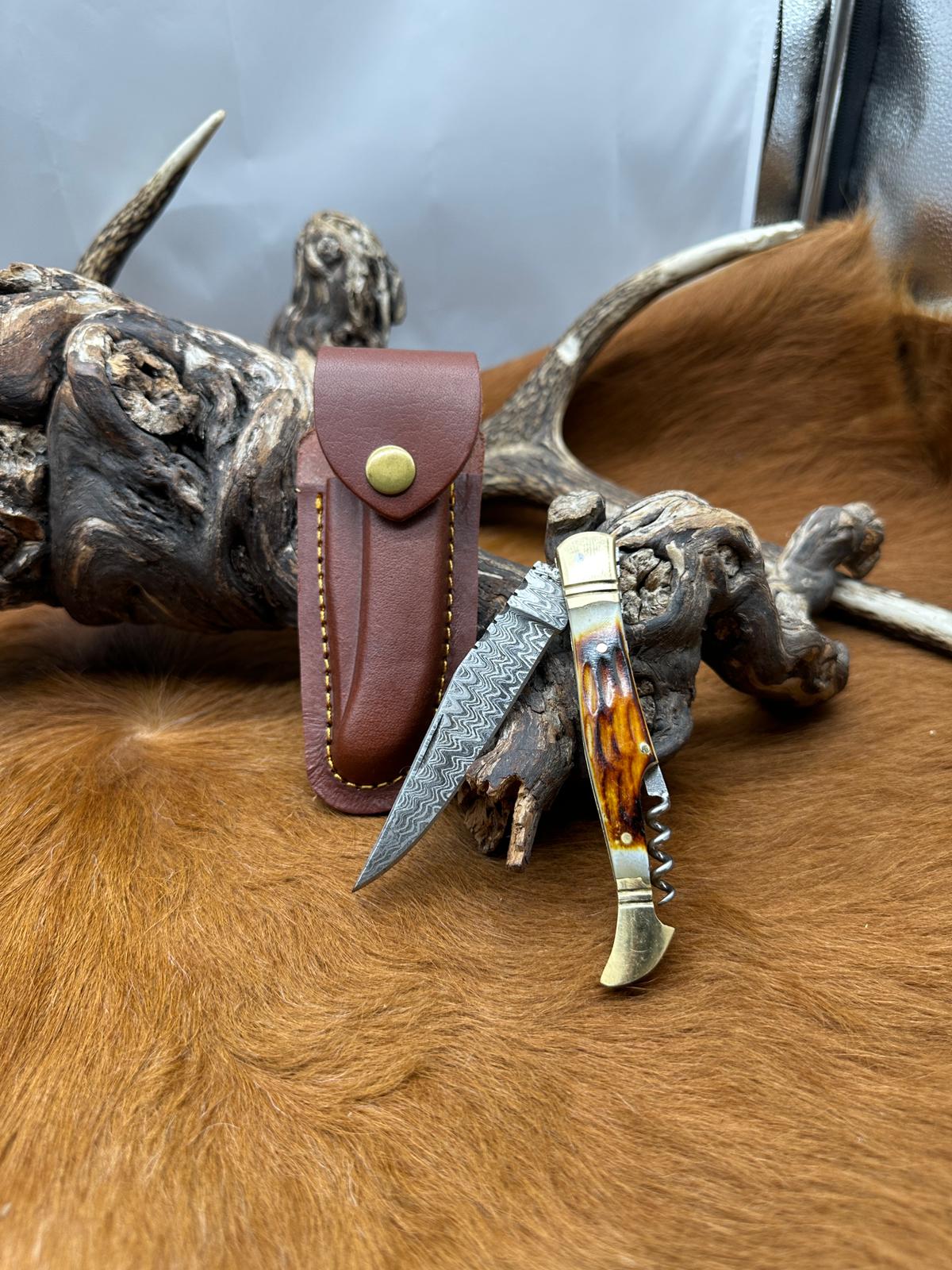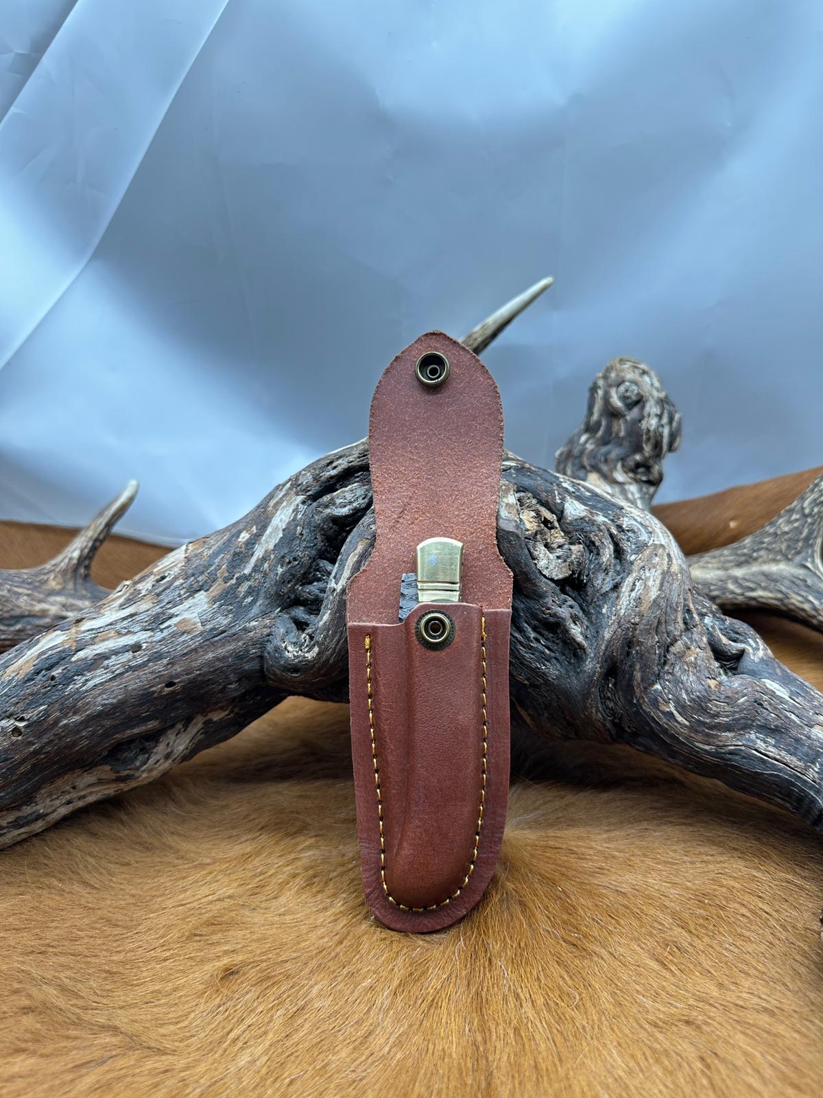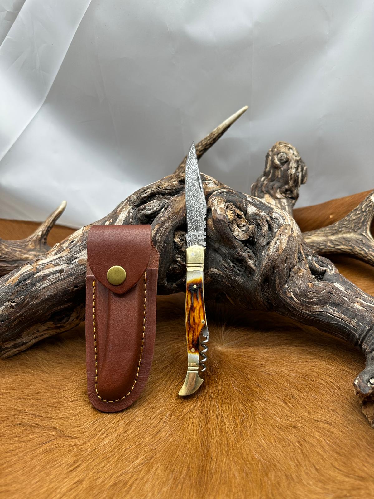 Magnifique couteau de poche pliant , manche en OS taillé effet CHIPAWAY