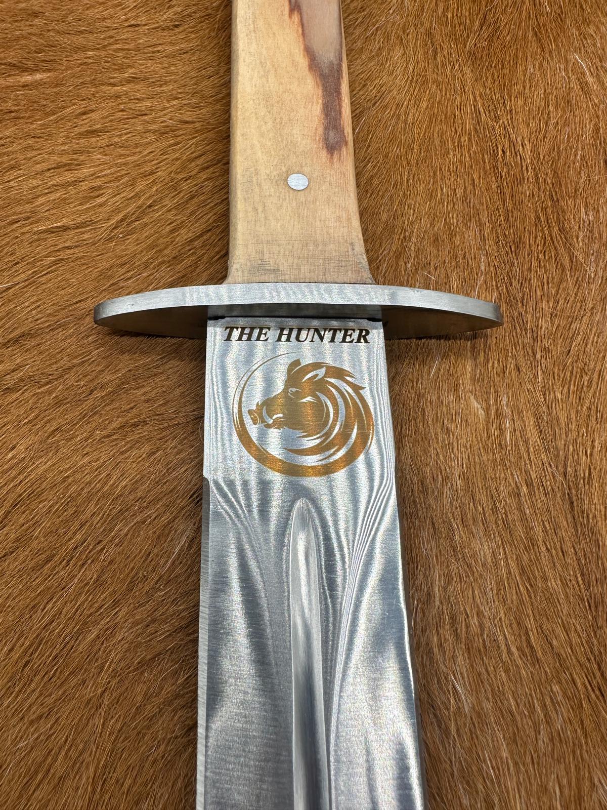 Dague de chasse “The Hunter” avec tête de Sanglier graver sur la lame, manche en bois DTH11