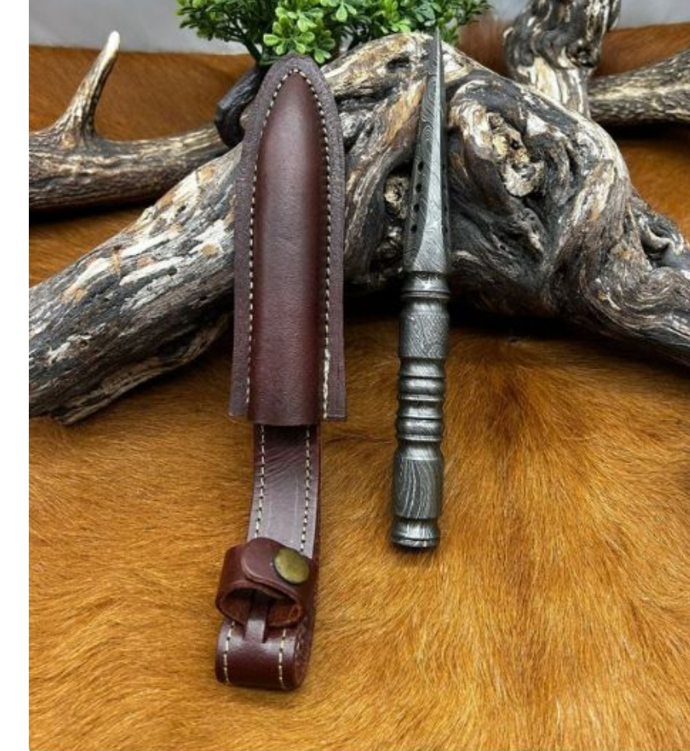 Dague spirale Damas 256 couches lame fixe avec etui en cuire taille totales 22 cm