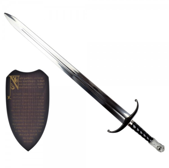 ÉPÉE FANTASTIQUE ORNEMENTALE INSPIRÉ DE L'ÉPÉE DE JON SNOW SÉRIE GAME OF THRONES LAME EN ACIER POIGNÉE EN MÉTAL POIGNÉE EN PLASTIQUE SUPPORT MURAL EN BOIS INCLUS LONGUEUR DE LA LAME 820 mm LONGUEUR TOTALE 1070 mm POIDS 1390 g