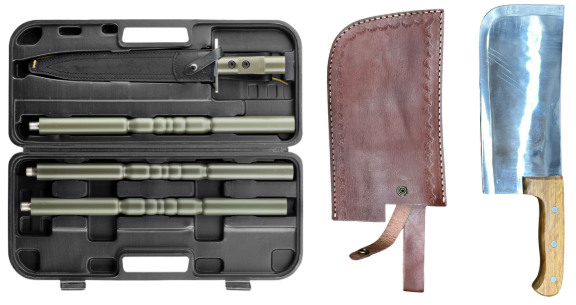 Livré dans une mallette ABS noire avec un fourreau cuir pour la lame.