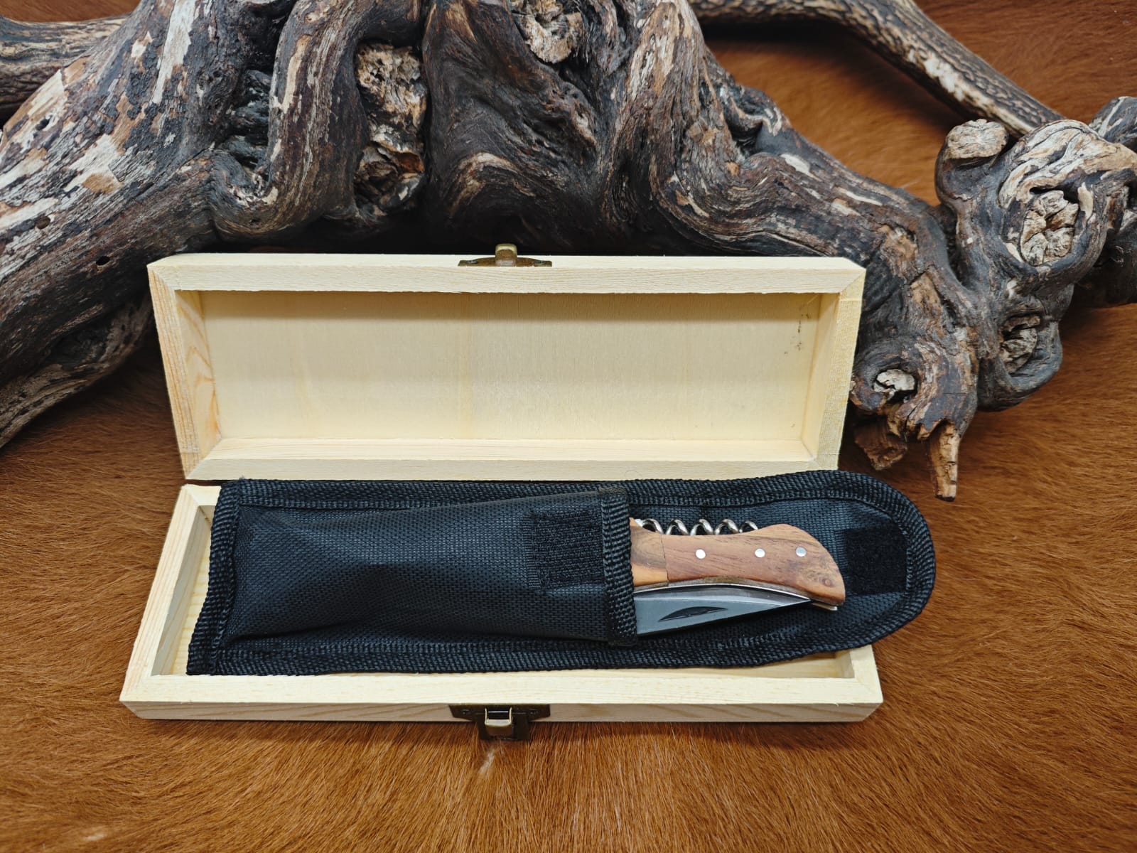 Couteau de poche tire bouchon manche en bois lame en acier 440