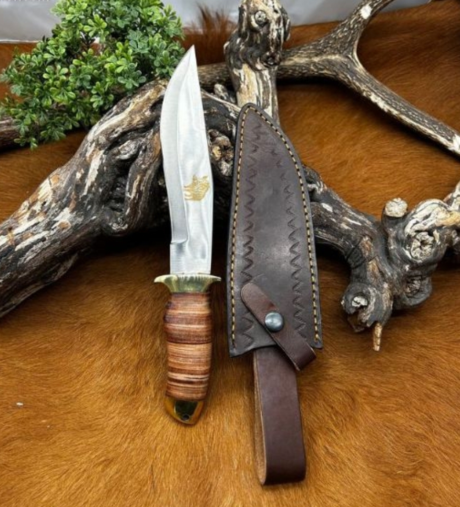 Magnifique couteau de chasseur gravé sanglier sur la lame