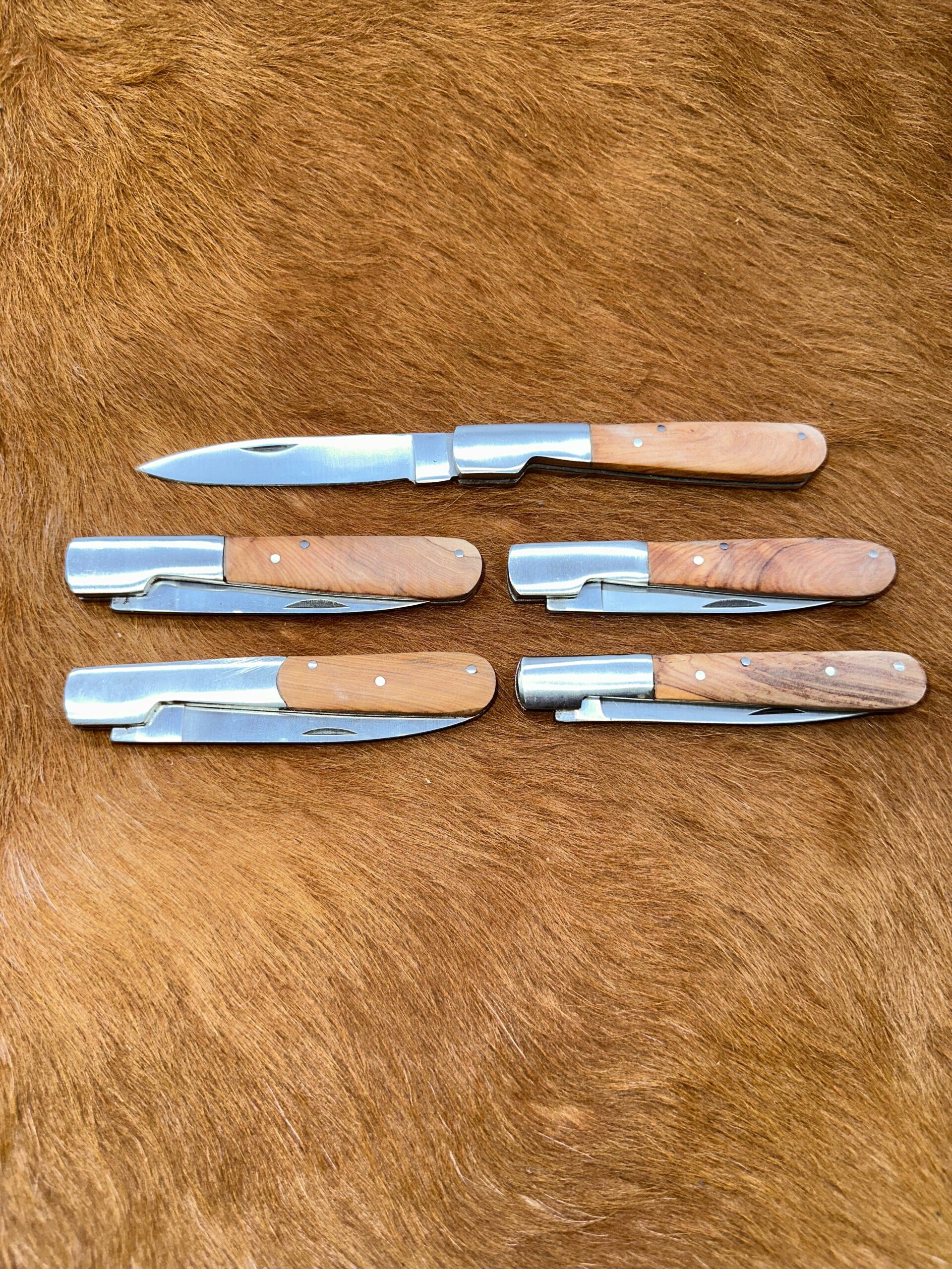 Lot de 5 couteaux de poche manche bois olivier Ref LT05 avec gravure prénom