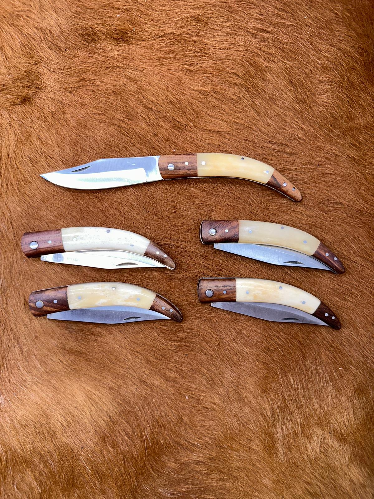 Lot de 5 couteaux de poche manche en os et en bois Ref LT52 avec gravure prénom