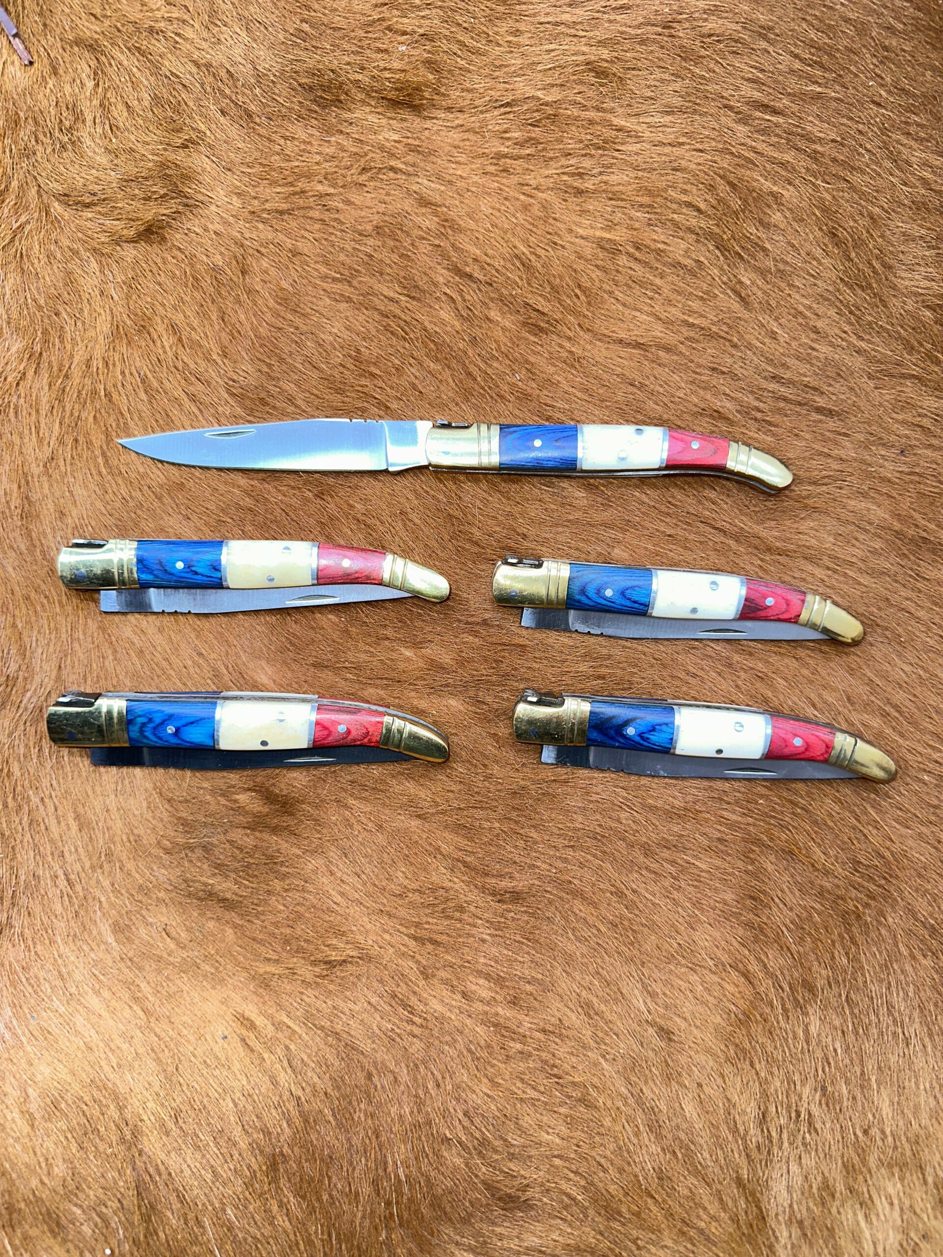 Lot de 5 couteaux de poche manche en os et en bois Ref LT75 avec gravure prénom