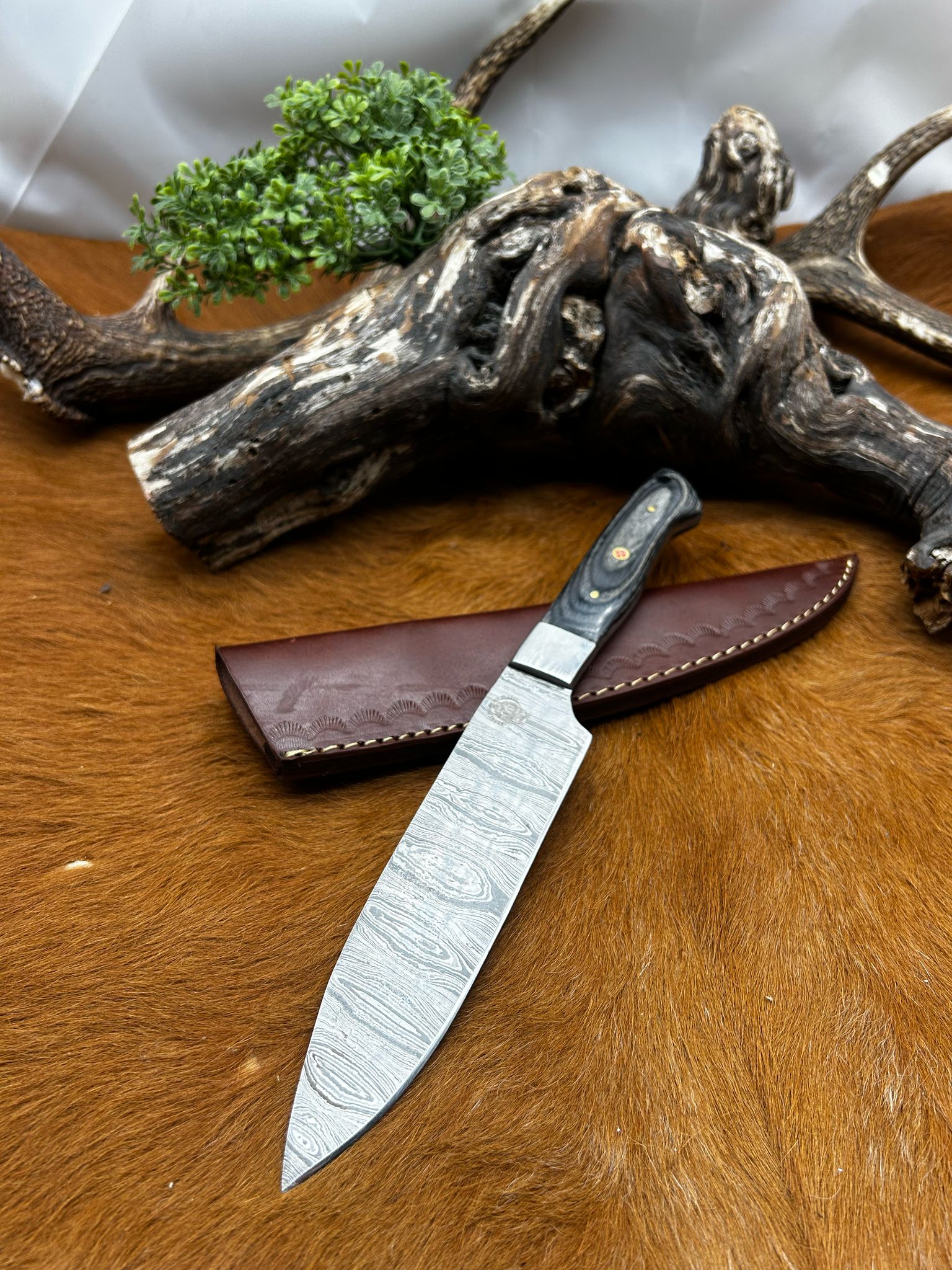 Magnifique couteau smoky Blades Mountain lame en acier Damas 256 couches manche en bois