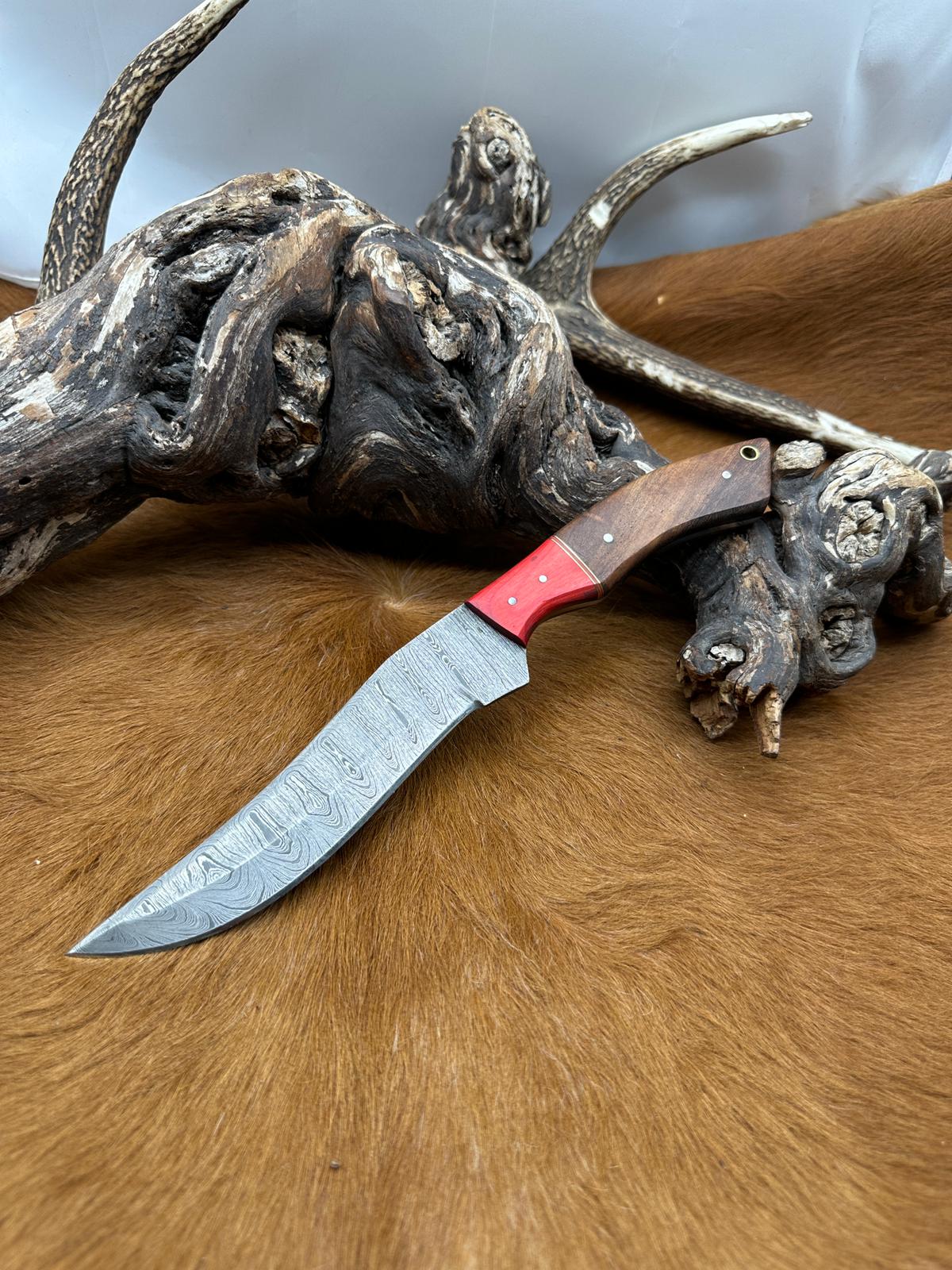 Lame : lame en acier damassé, aux motifs fluides et élégants, révélant un travail artisanal précis. Elle offre un tranchant performant, durable et parfaitement adapté à un usage outdoor, chasse ou collection.