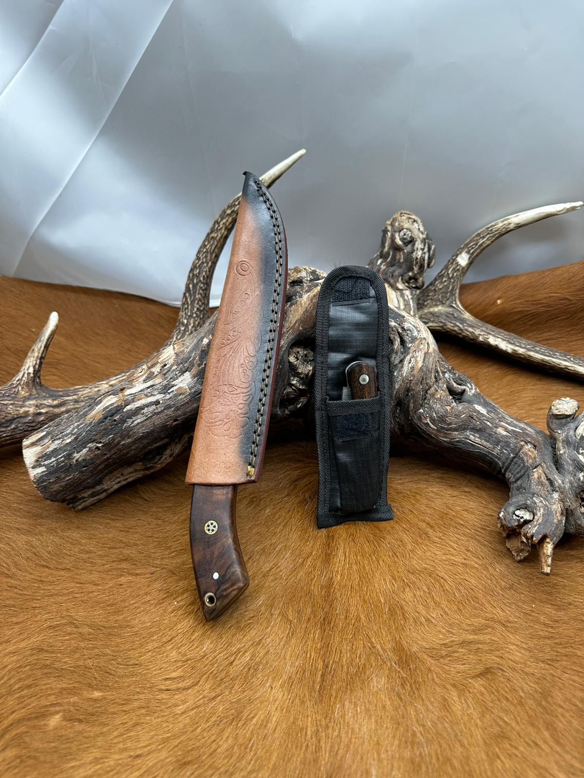 Étui : livré avec un étui en cuir de haute qualité, cousu et embossé, parfaitement ajusté à la lame. Il assure une protection optimale et un port élégant à la ceinture.