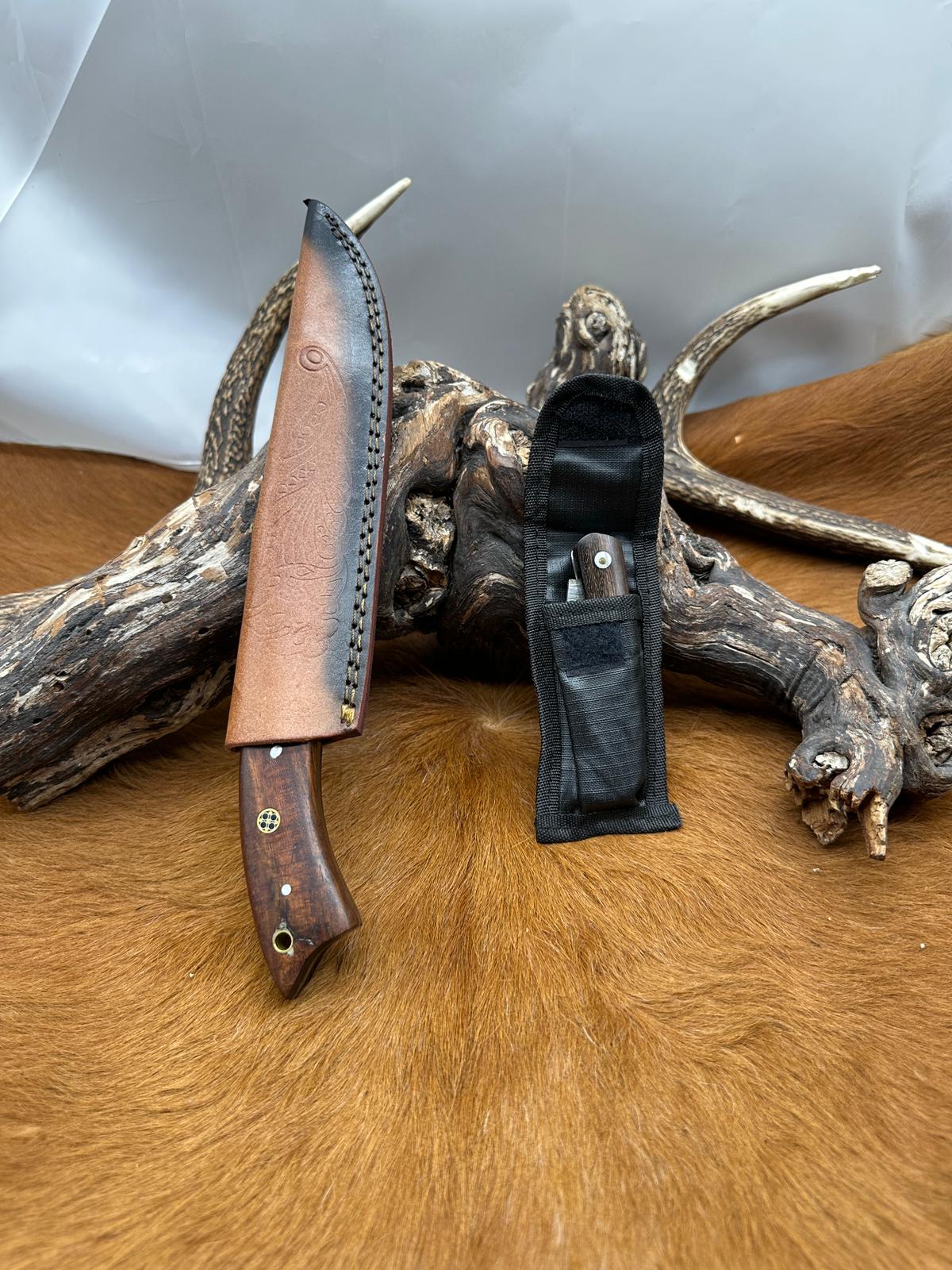 Étui : livré avec un étui en cuir de haute qualité, cousu et embossé, parfaitement ajusté à la lame. Il assure une protection optimale et un port élégant à la ceinture.