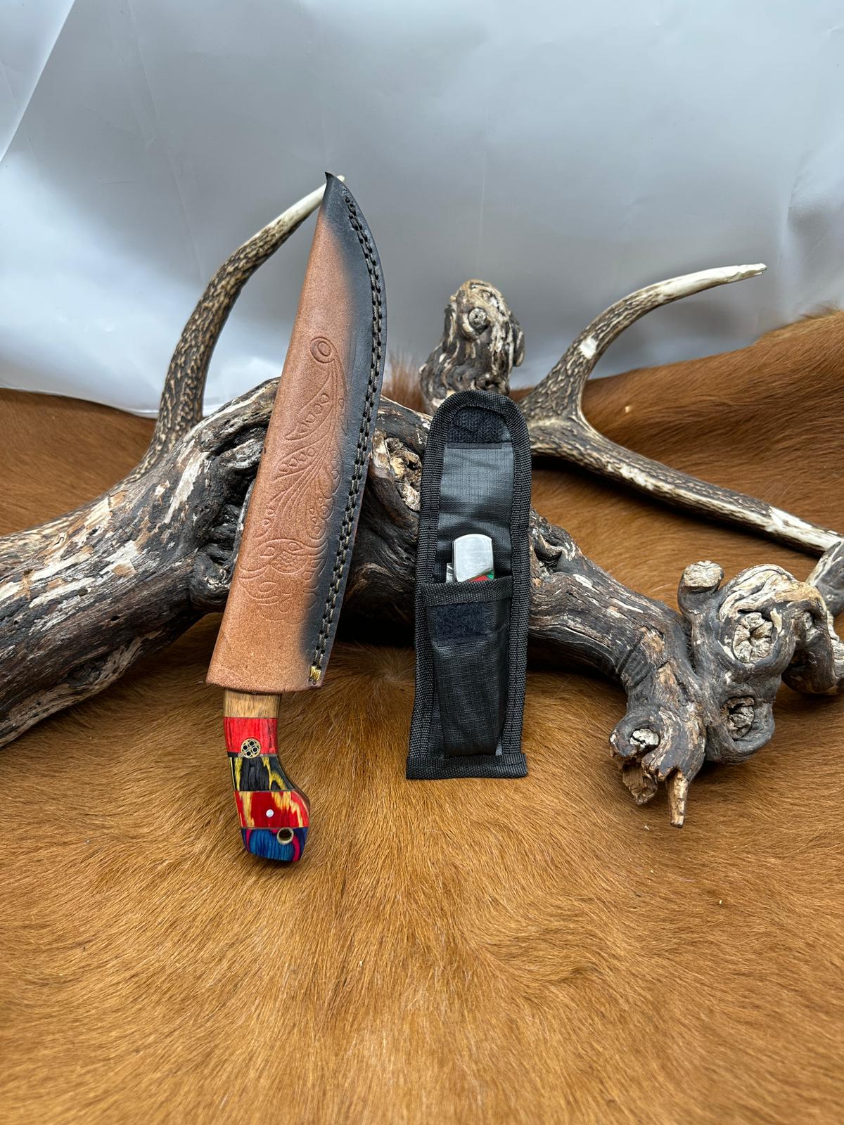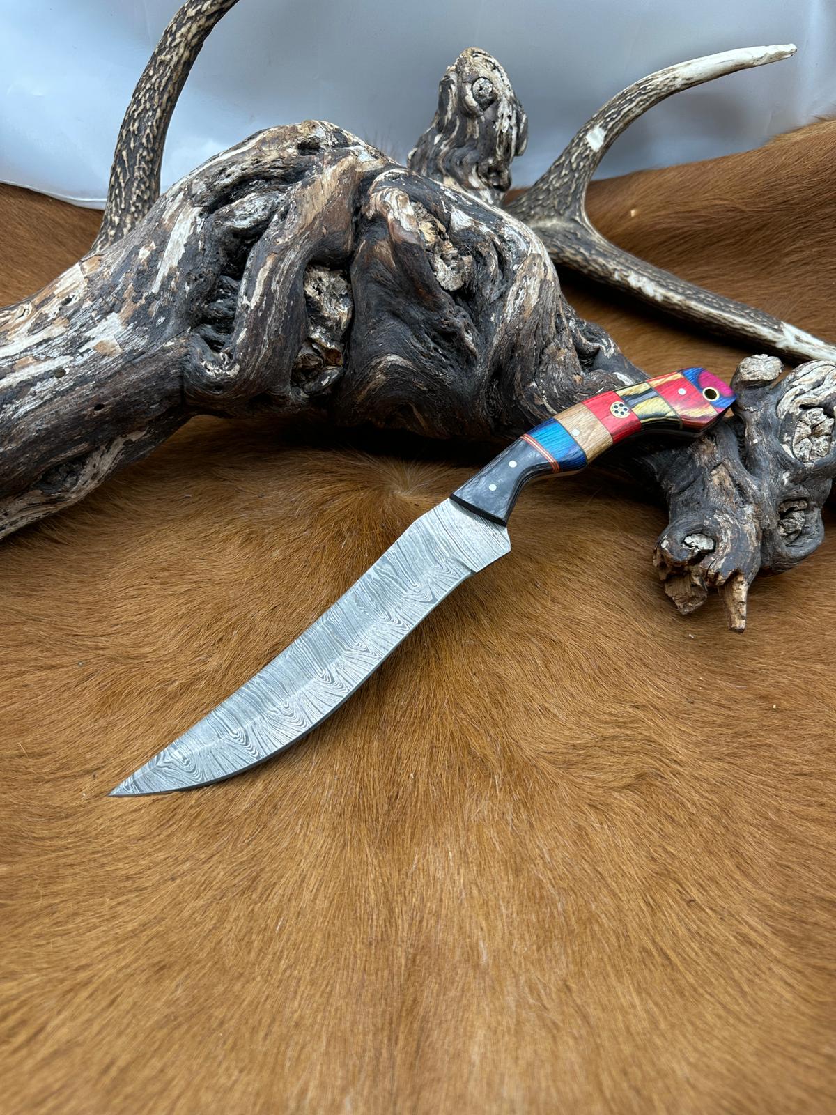 Magnifique Couteau de chasse lame en acier damas 256 couches avec Petit Couteau de poche Offert ref D317