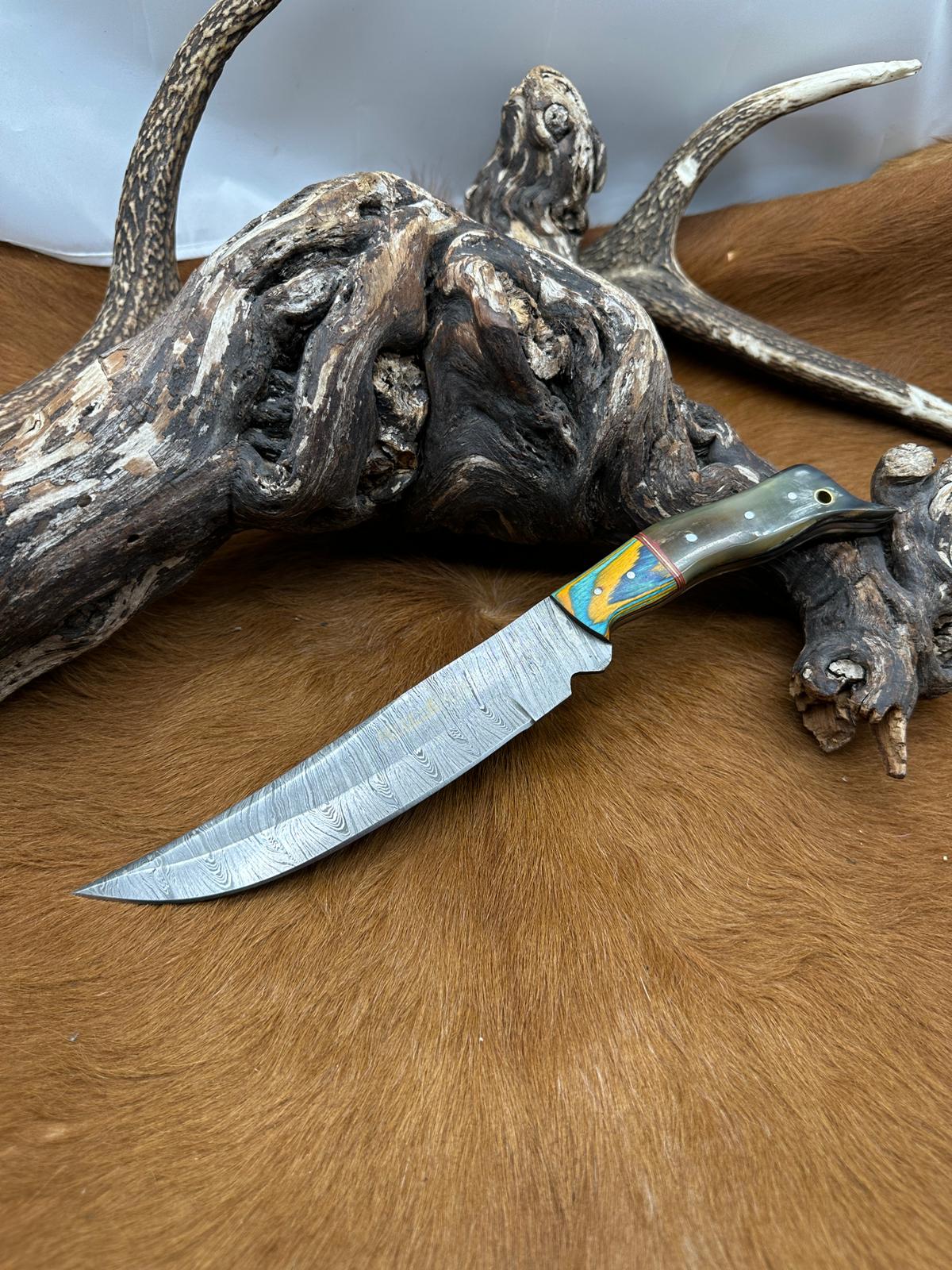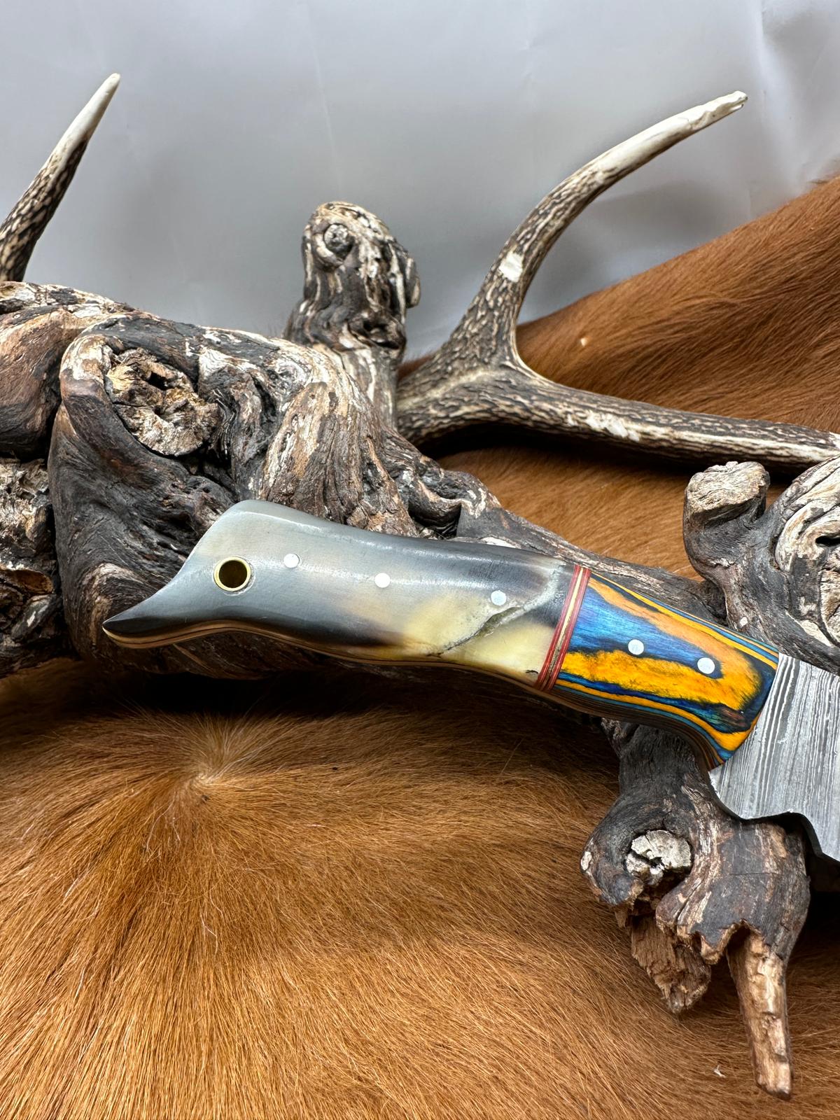 Manche : Manche en Corne de Buffle, associé à une intercalaire en bois teinté Coloré, apportant contraste et élégance. La prise en main est confortable et équilibrée.