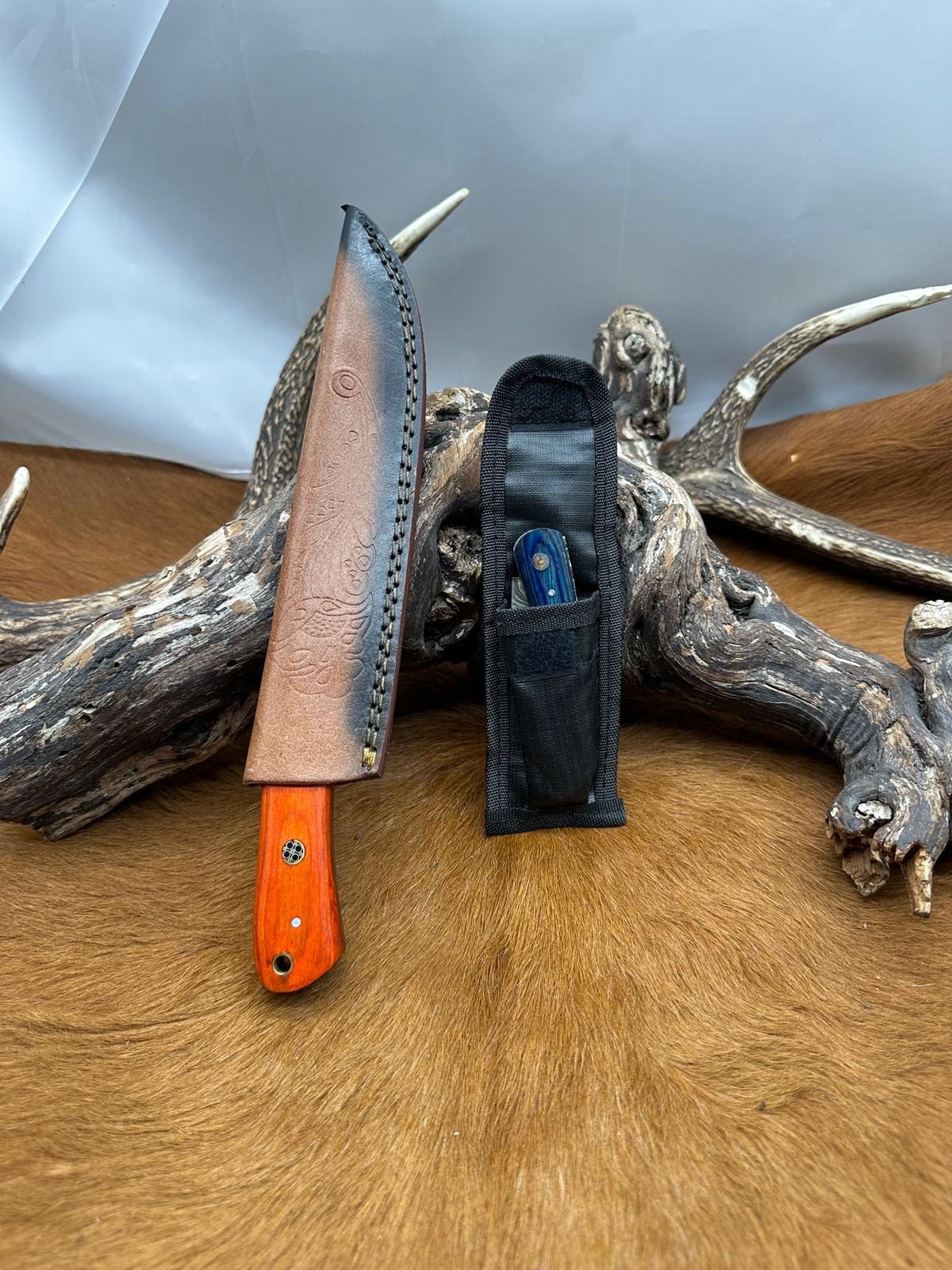 Magnifique Couteau de chasse lame en acier damas 256 couches avec Petit Couteau de poche Offert ref D339