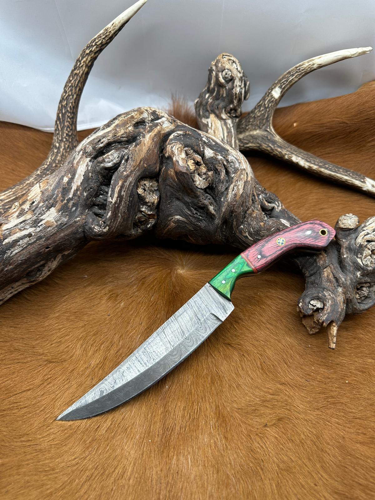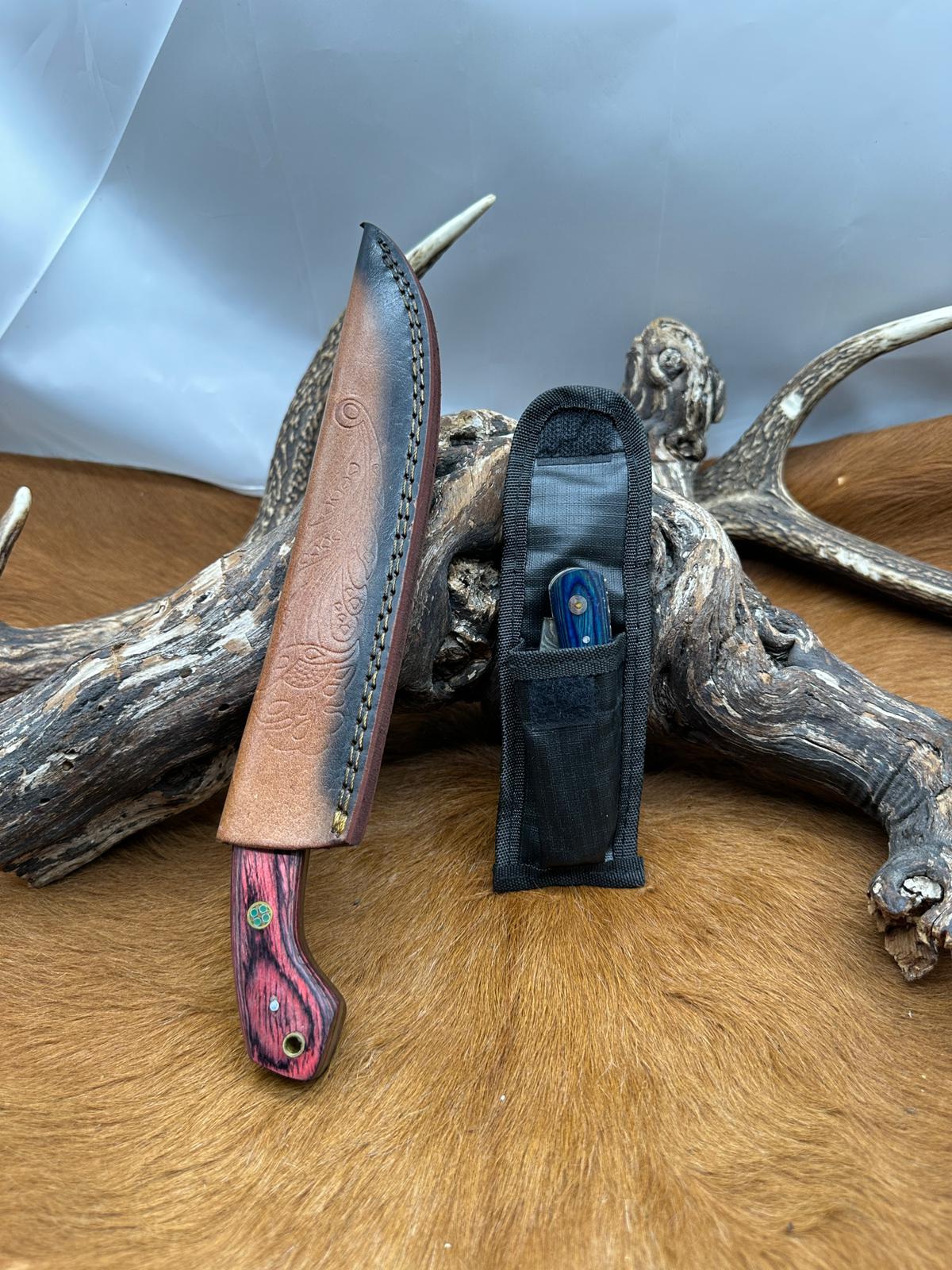 Magnifique Couteau de chasse lame en acier damas 256 couches avec Petit Couteau de poche Offert ref D340