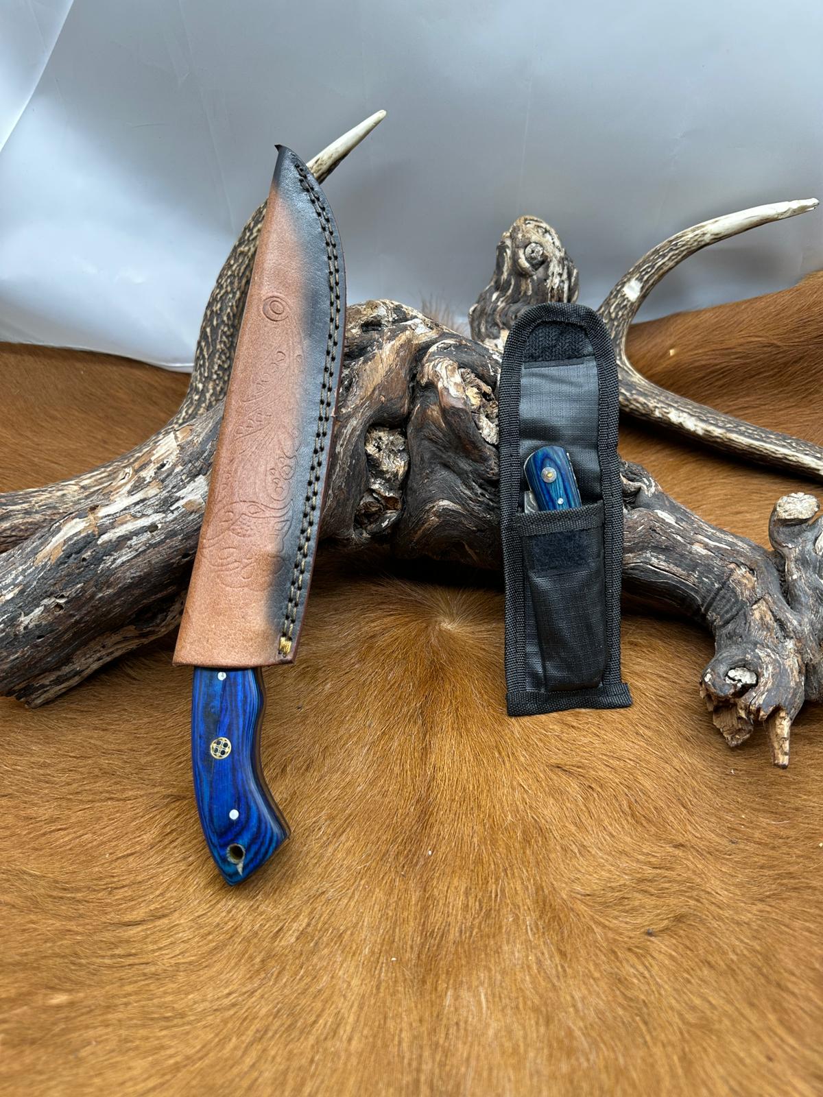 Étui : livré avec un étui en cuir épais, cousu et embossé, parfaitement ajusté à la lame. Il permet un port sécurisé à la ceinture et protège efficacement le couteau.