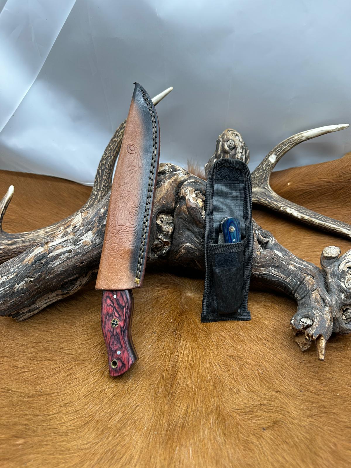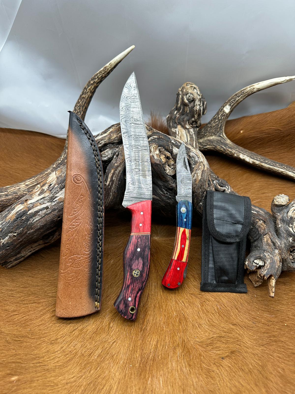 Magnifique Couteau de chasse lame en acier damas 256 couches avec Petit Couteau de poche Offert ref D346