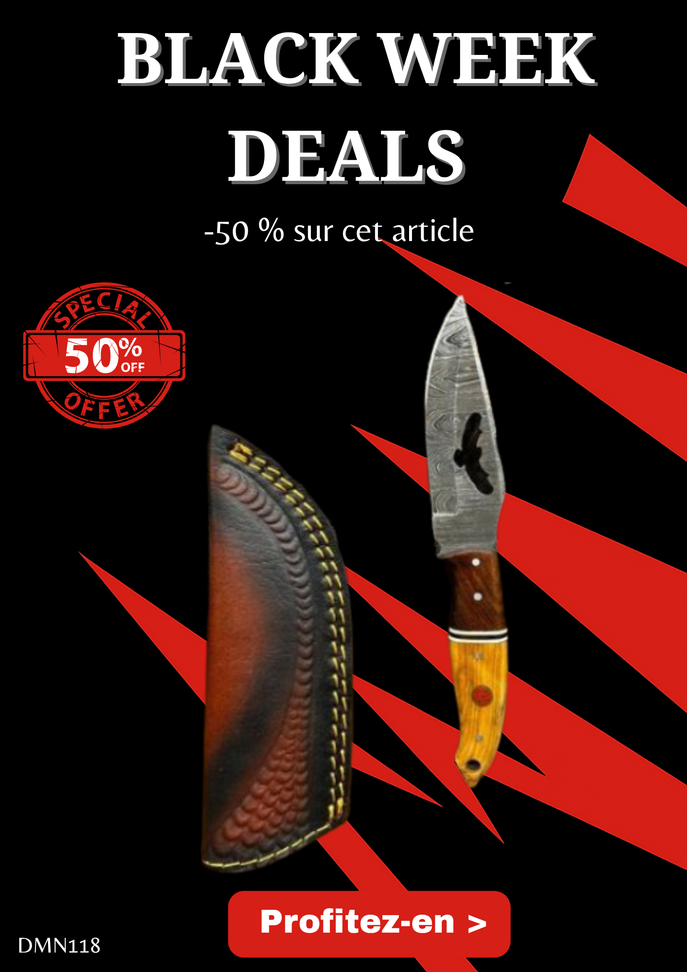 Opération BLACK WEEK -50% sur cet article Magnifique couteau EAGLE lame en acier damas 256 couches manche en bois d’olivier Ref DMN118