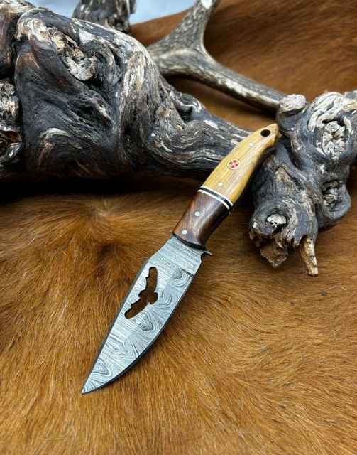 Magnifique couteau EAGLE lame en acier damas 256 couches manche en bois Ref DMN118
