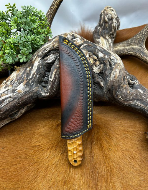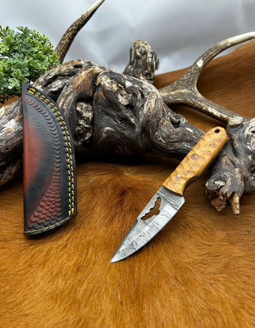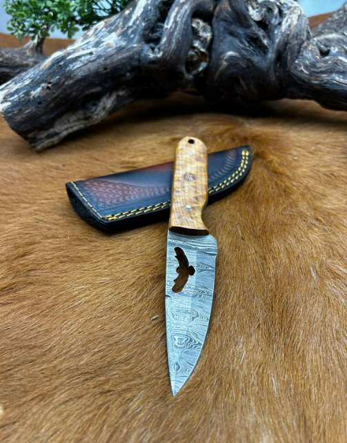 Magnifique couteau lame en acier damas 256 couches avec un aigle au centre découper au laser