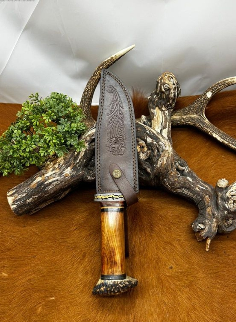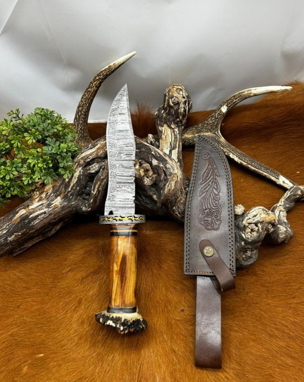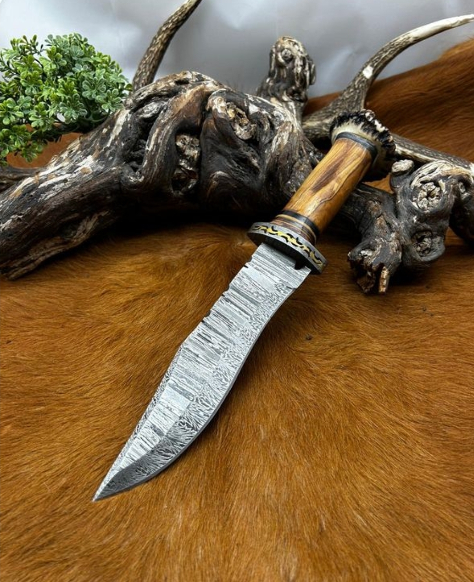 Couteau chasse lame damas 256 couches Manche en bois d’olivier ref D61
