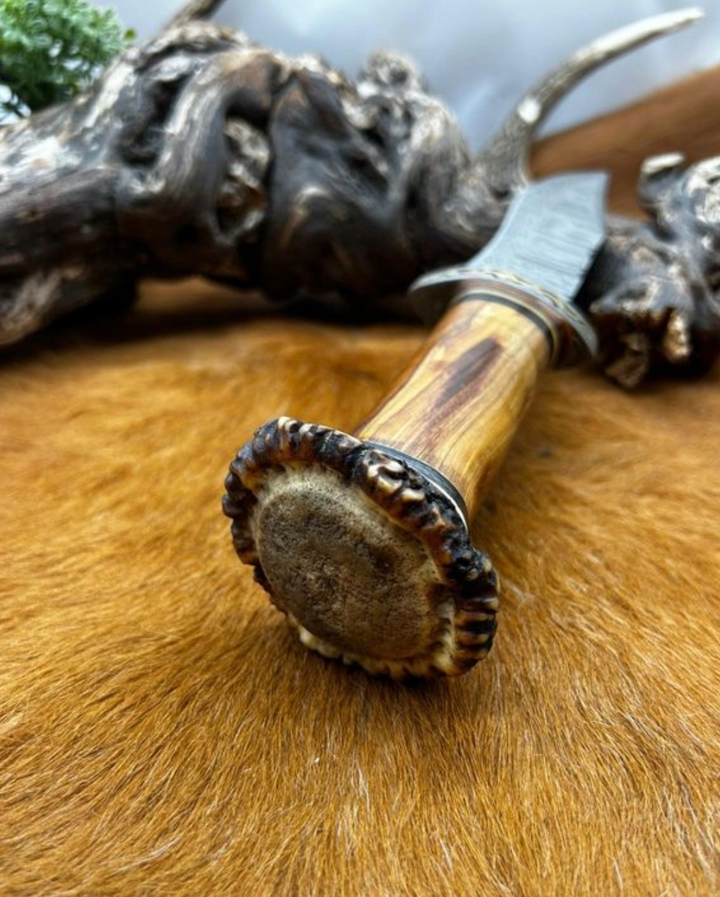 Couteau chasse lame damas 256 couches Manche en bois d'olivier ref D61