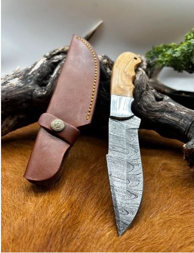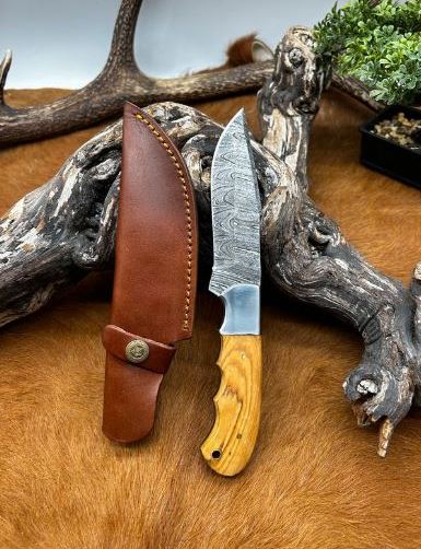 Couteau pliant lame damas 256 couches avec mitre en damas