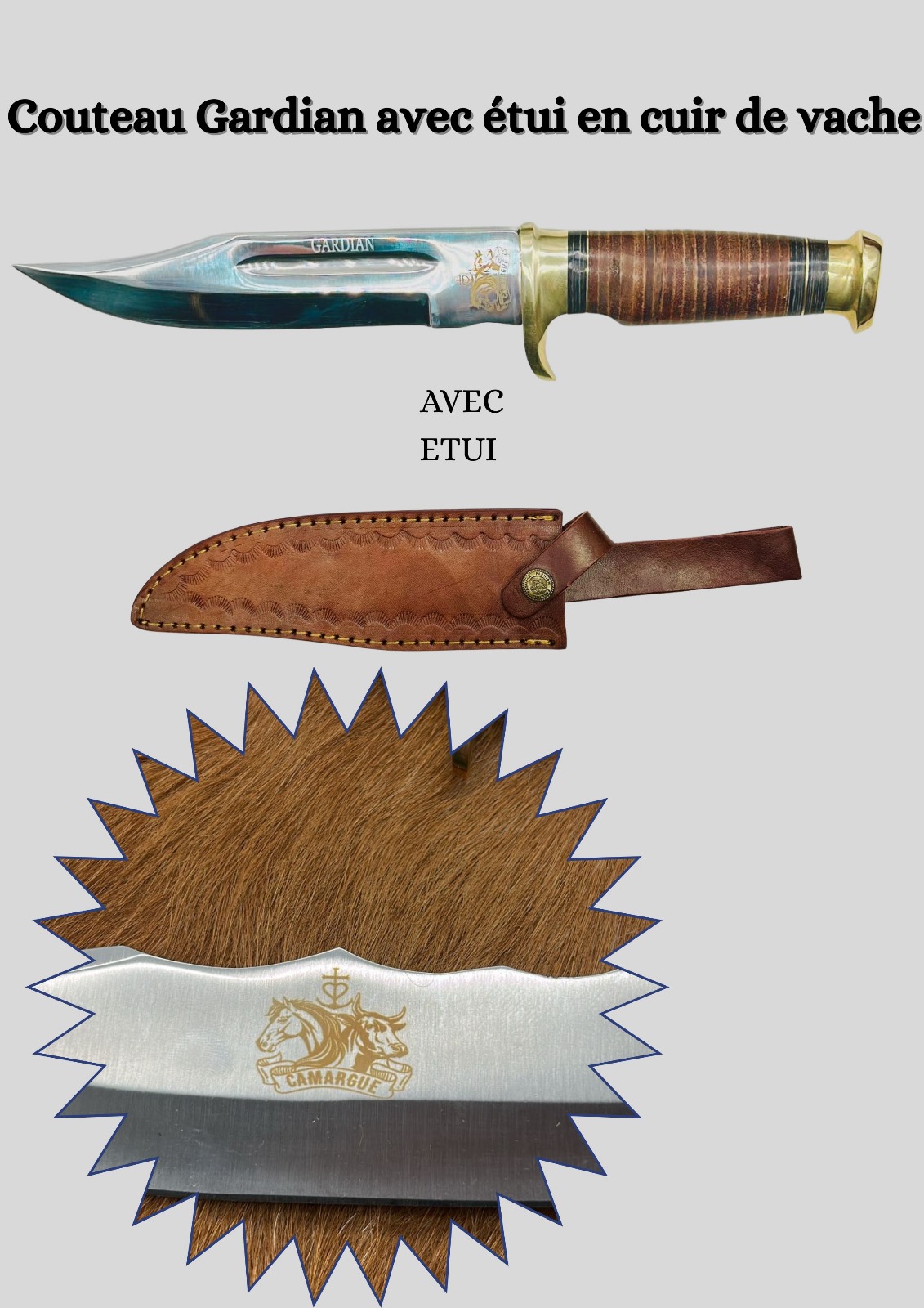 Magnifique couteau Gardian manche en cuir avec étui en cuir ref GRA12