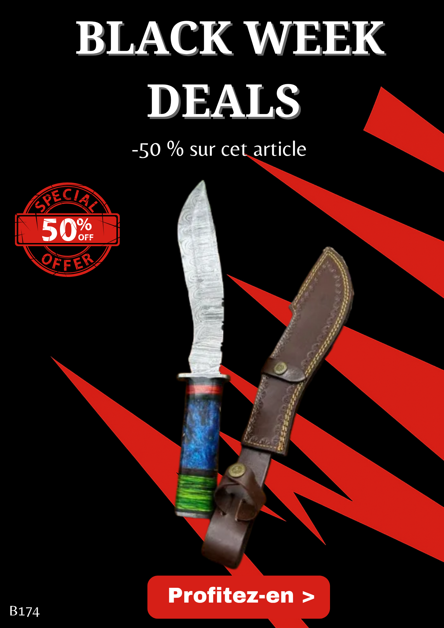 quantité de Opération BLACK WEEK -50% sur cet article Magnifique couteau lame acier damas ref B174