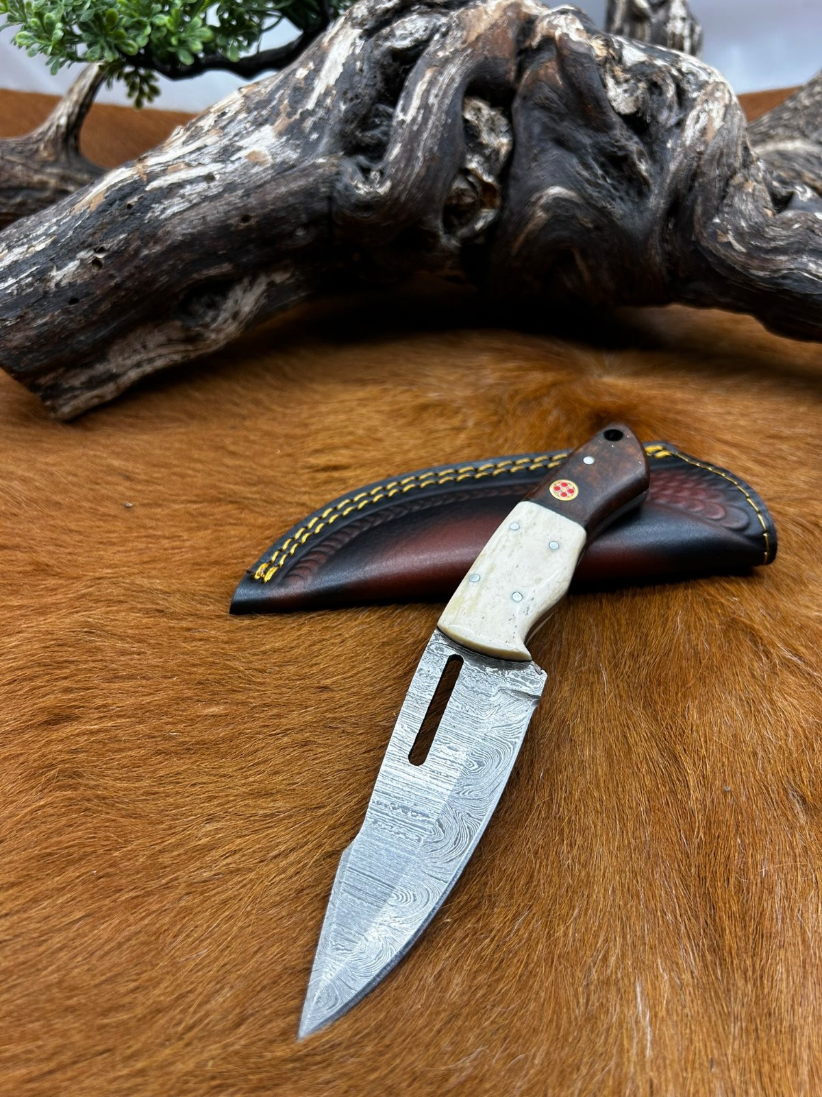 Magnifique couteau lame en acier damas 256 couches avec une forme découper au laser