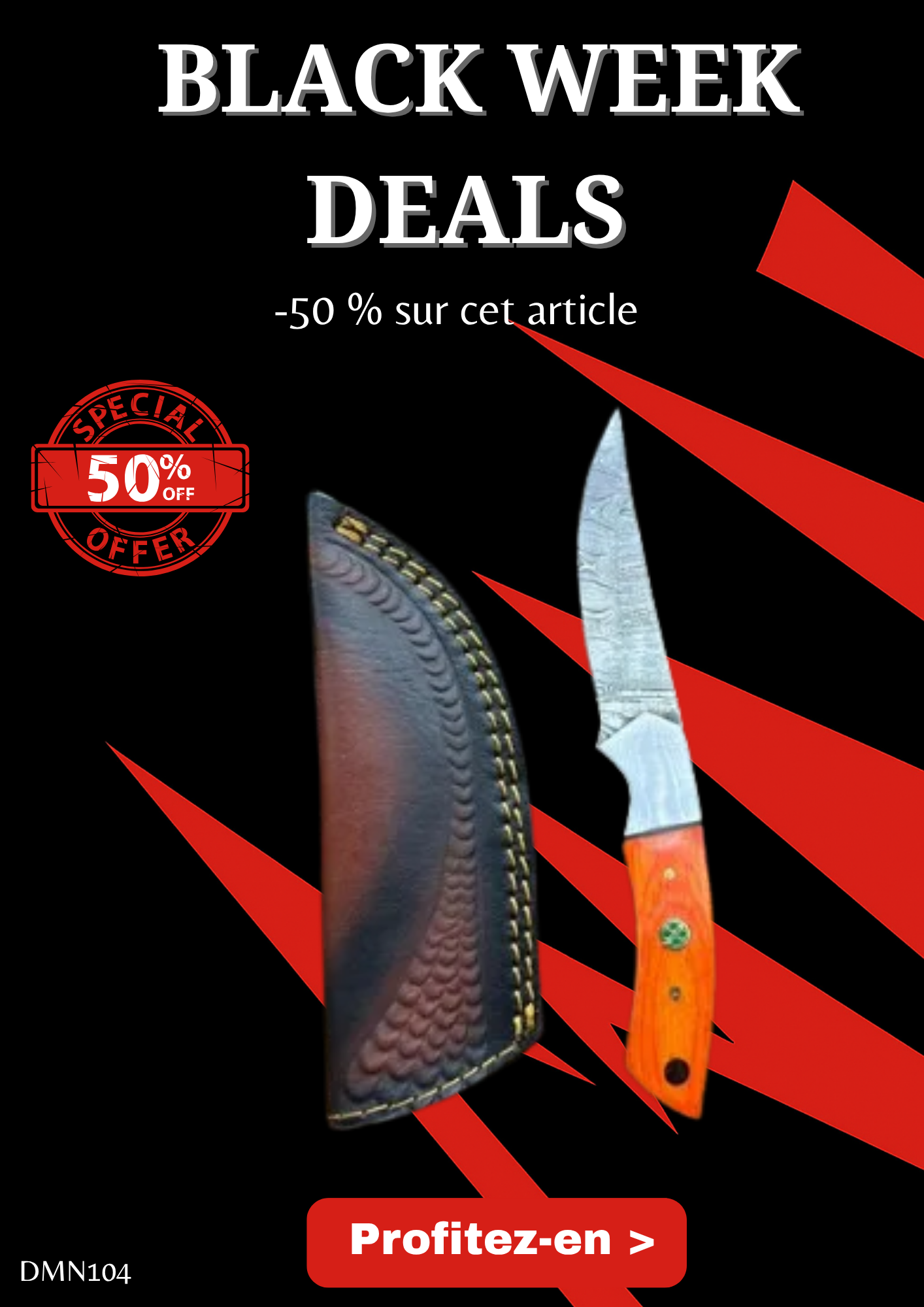 Opération BLACK WEEK -50% sur cet article Magnifique Couteau lame en acier damas 256 couches manche en bois de rose ref DMN104
