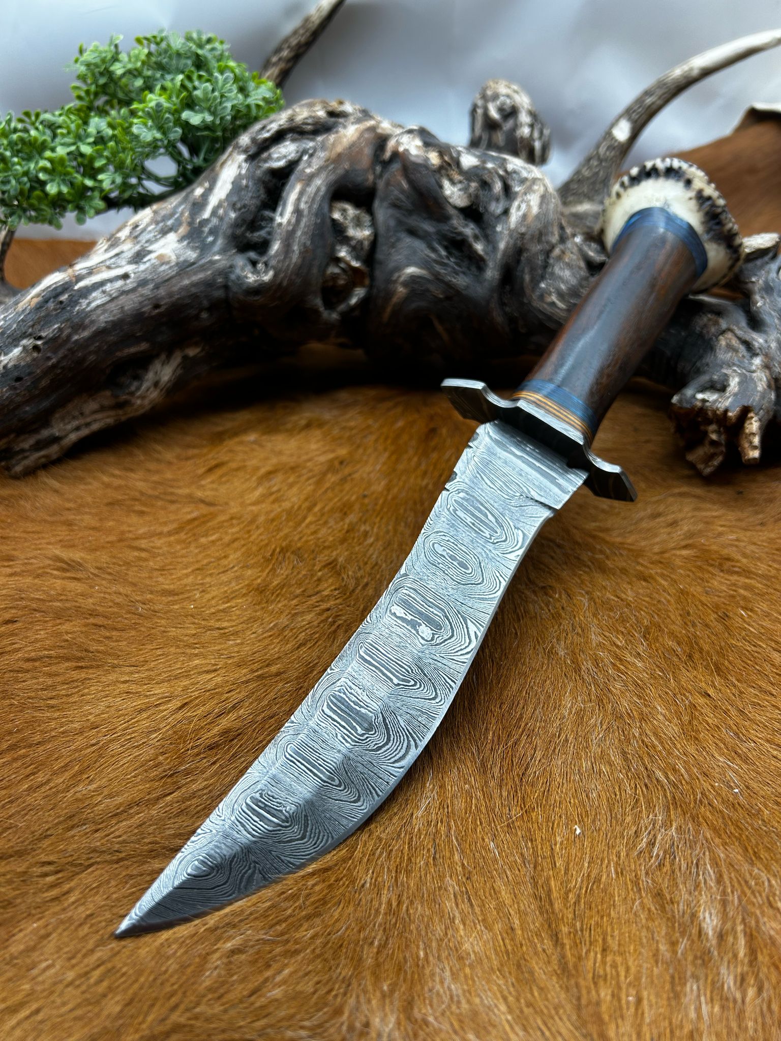 Bowie de chez RITE EDGE lame en acier damas 256 couches manche en corne brune ref B105