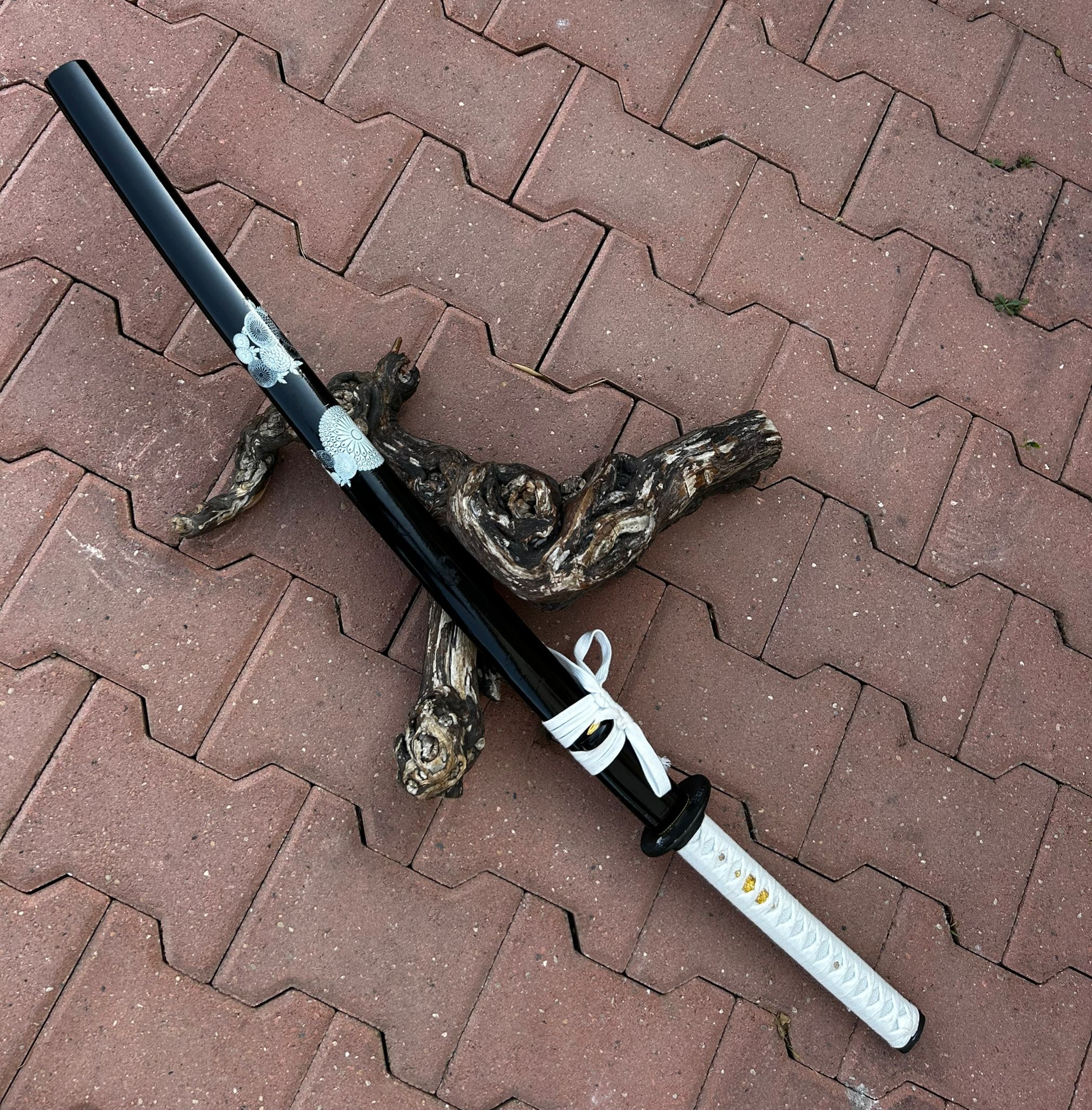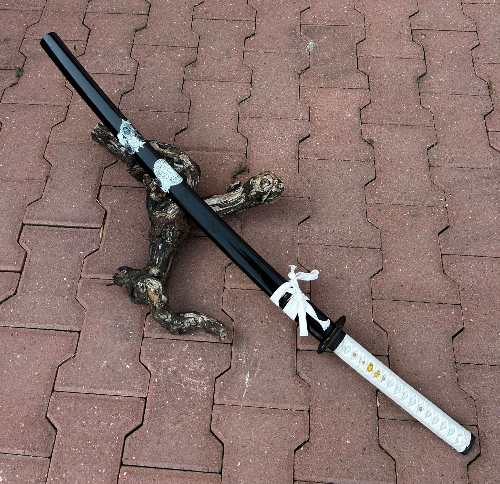 KATANA LONGUEUR TOTALE 100 cm LONGUEUR TOTALE DE LA LAME 65 cm FOURREAU EN BOIS AVEC GRAVURE