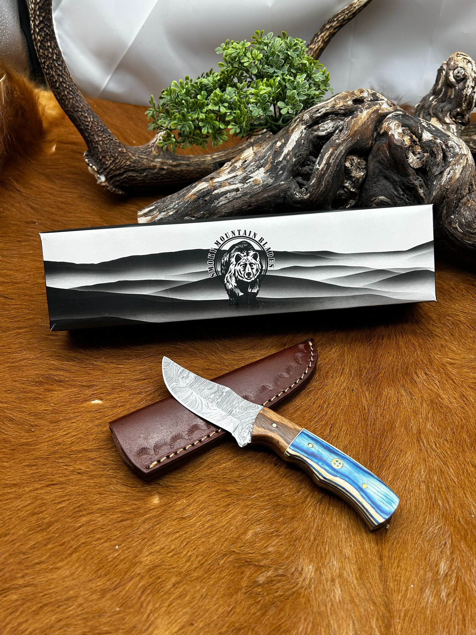 Magnifique couteau smoky Blades Mountain lame en acier Damas 256 couches manche en bois