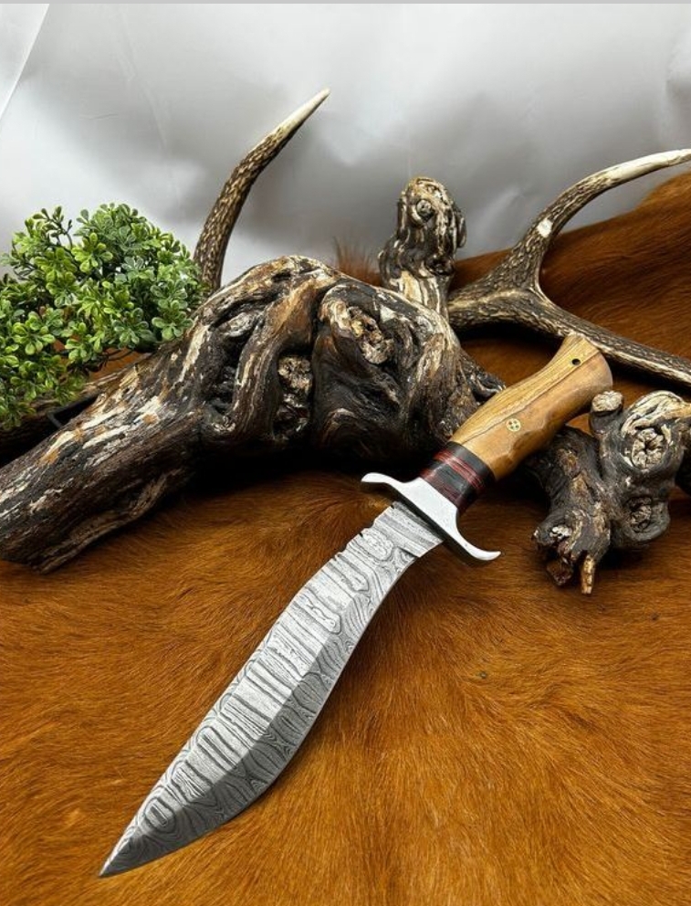 Bowie de chez RITE EDGE lame en acier Damas 256 couches manche en bois ref B232