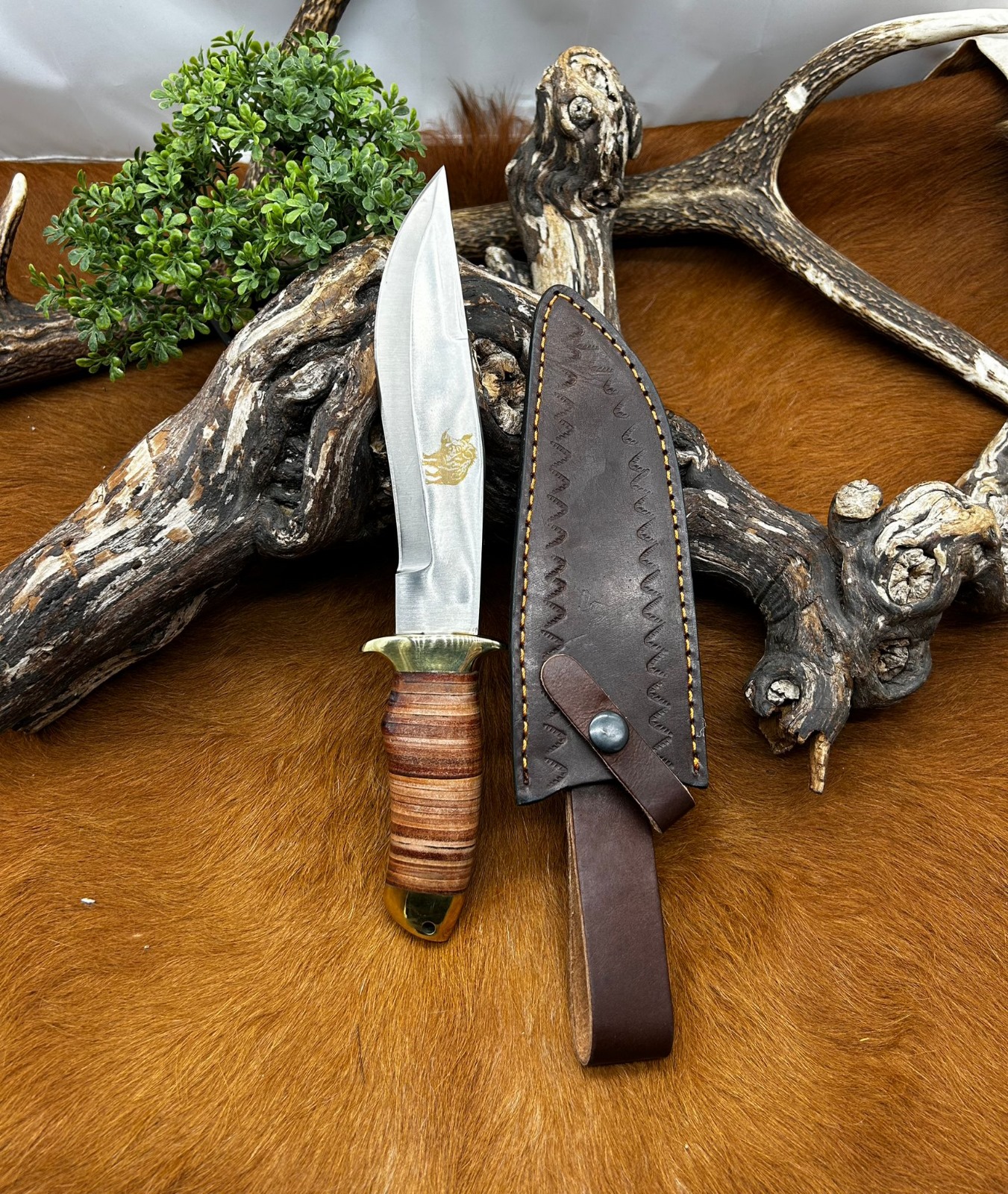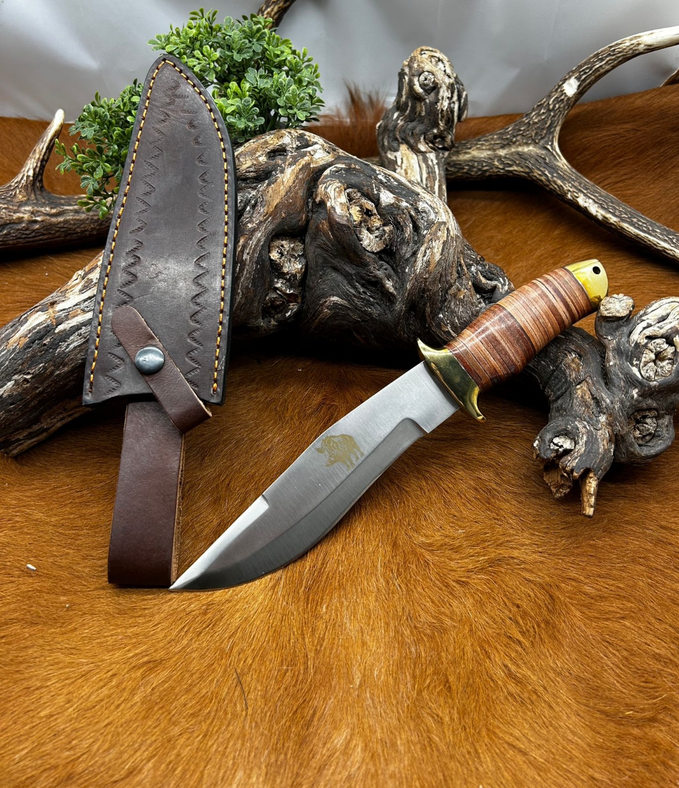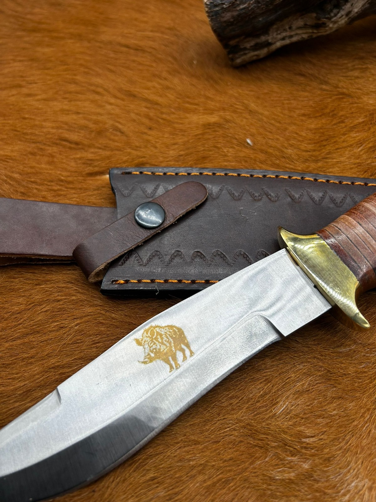 Magnifique couteau de chasseur gravé sanglier sur la lame